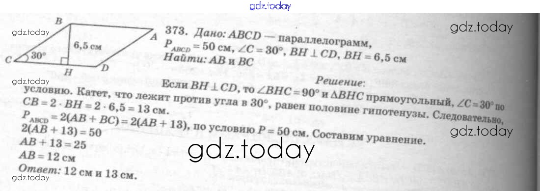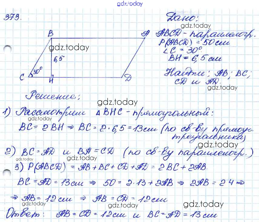 Ответы к Решение. Задачи 373 Учебнику по Геометрии для 7-9 класса Атанасян, Бутузов Просвещение 2010