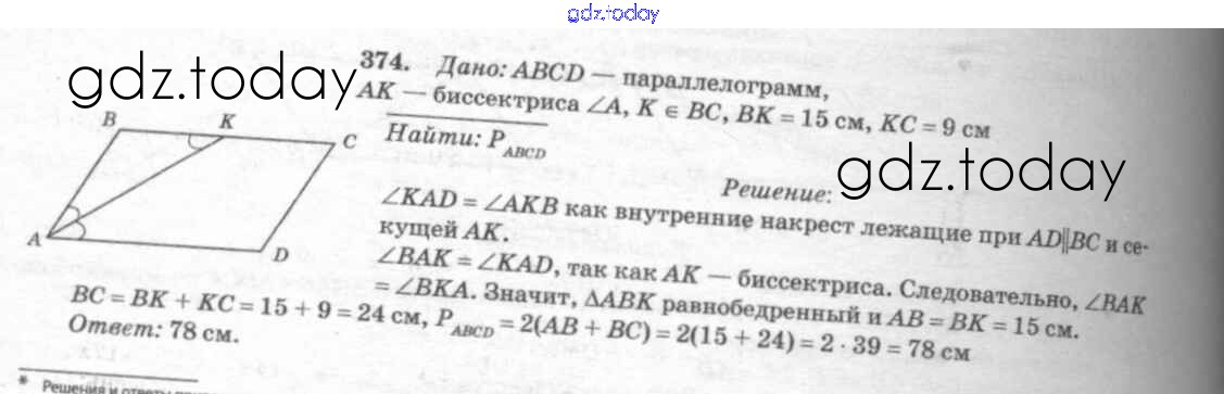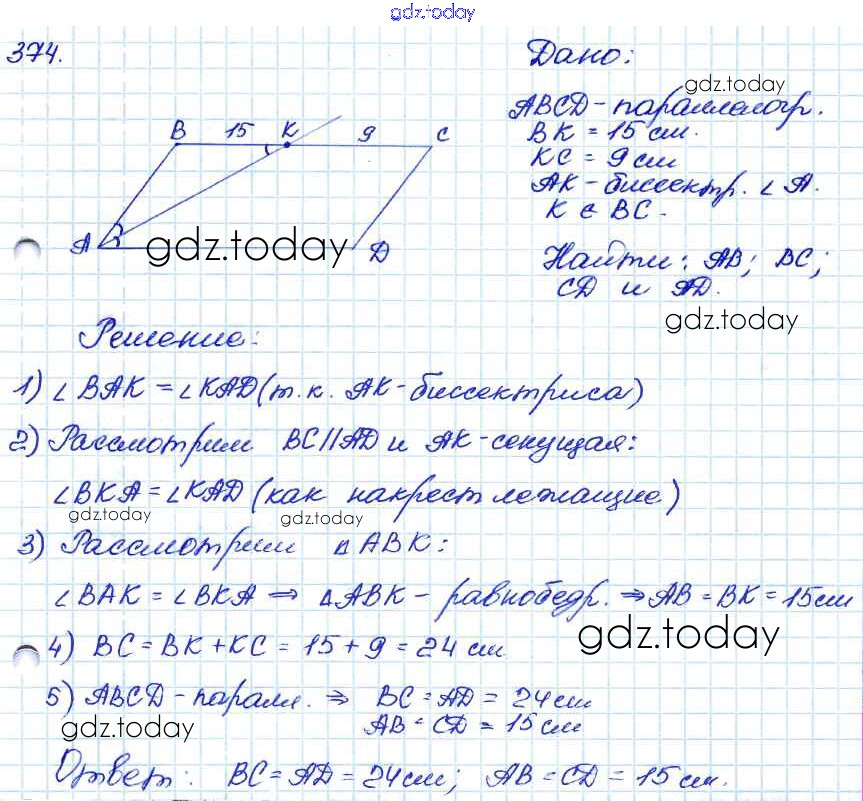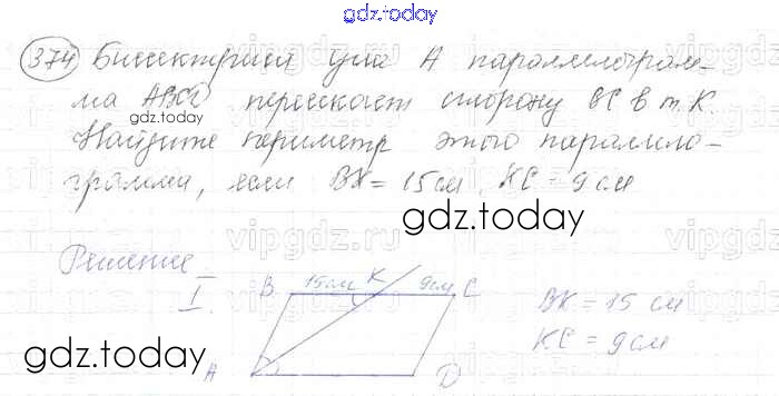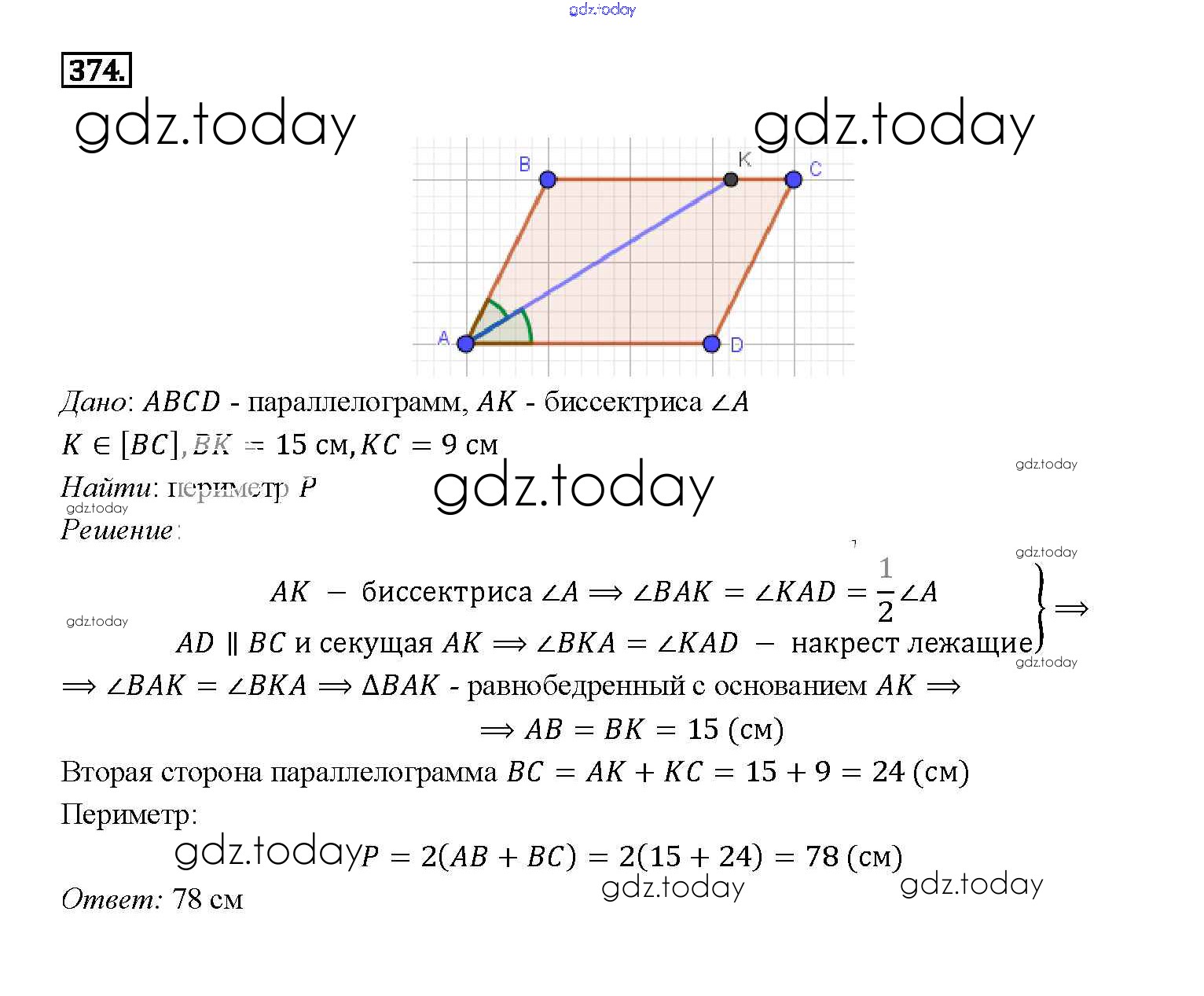 Ответы к Решение. Задачи 374 Учебнику по Геометрии для 7-9 класса Атанасян, Бутузов Просвещение 2010