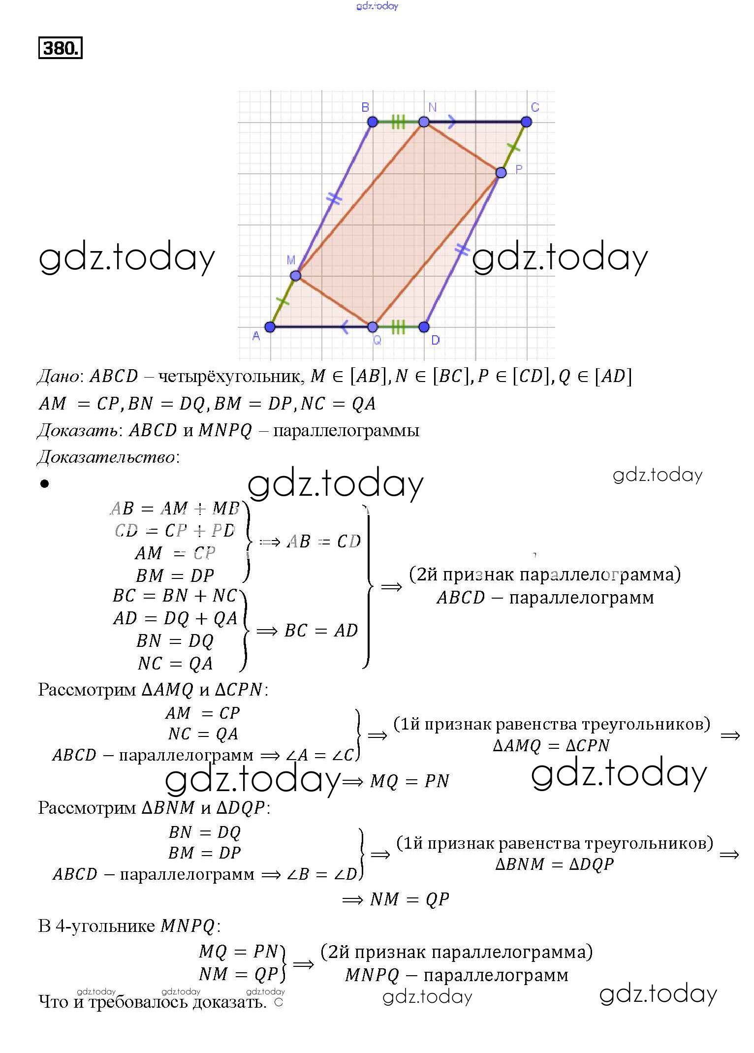 Ответы к Решение. Задачи 380 Учебнику по Геометрии для 7-9 класса Атанасян, Бутузов Просвещение 2010