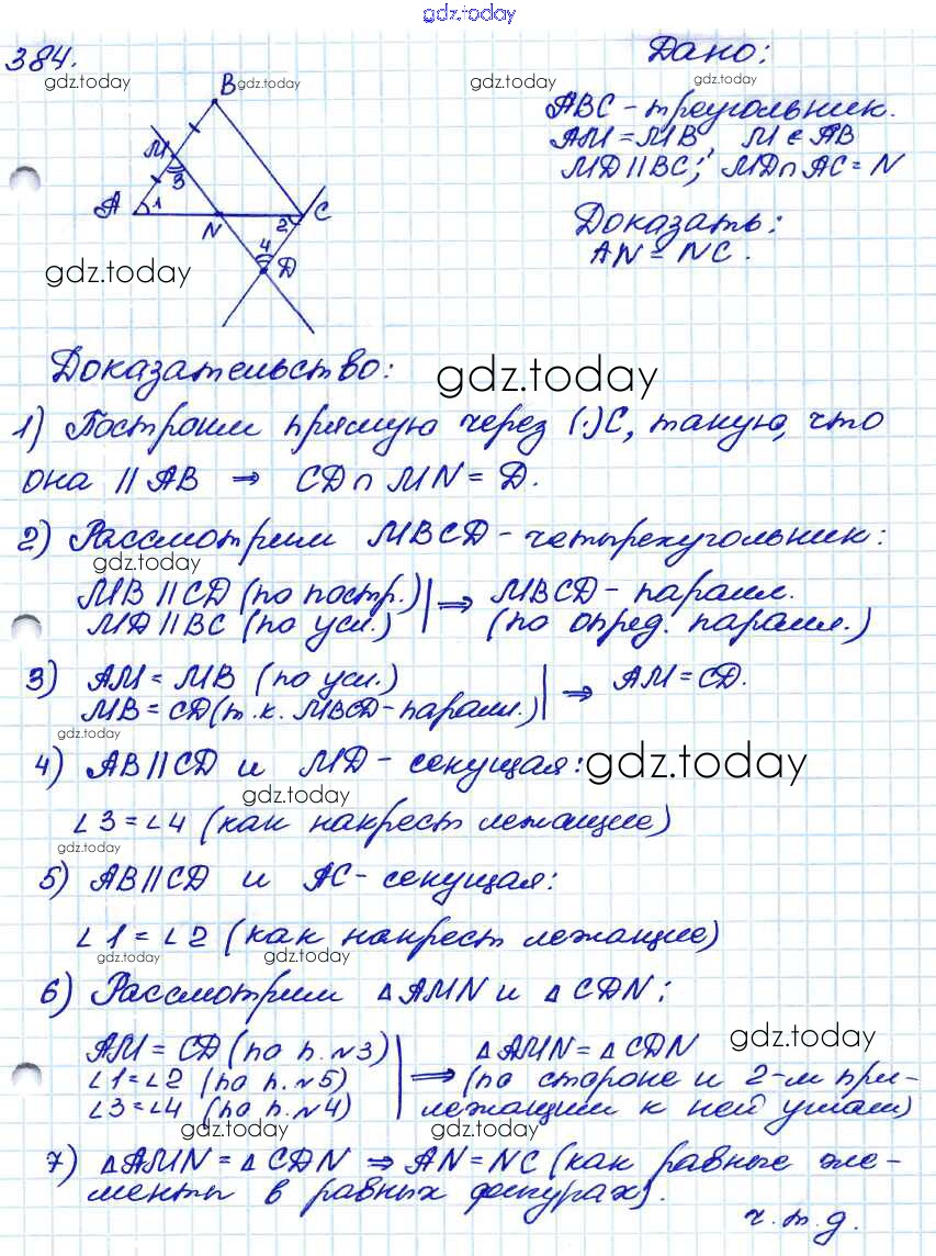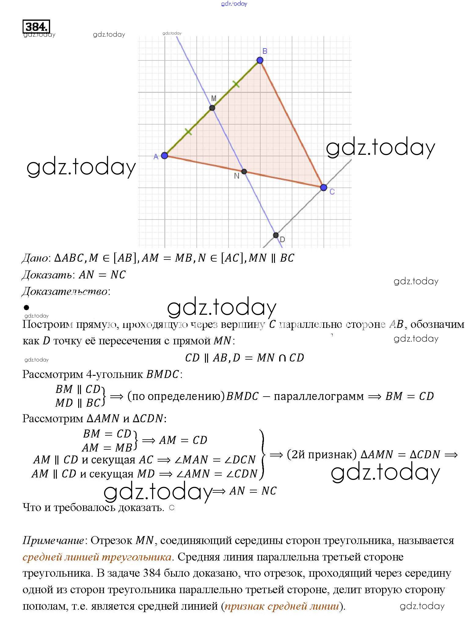 Ответы к Решение. Задачи 384 Учебнику по Геометрии для 7-9 класса Атанасян, Бутузов Просвещение 2010