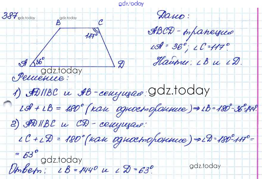 Ответы к Решение. Задачи 387 Учебнику по Геометрии для 7-9 класса Атанасян, Бутузов Просвещение 2010
