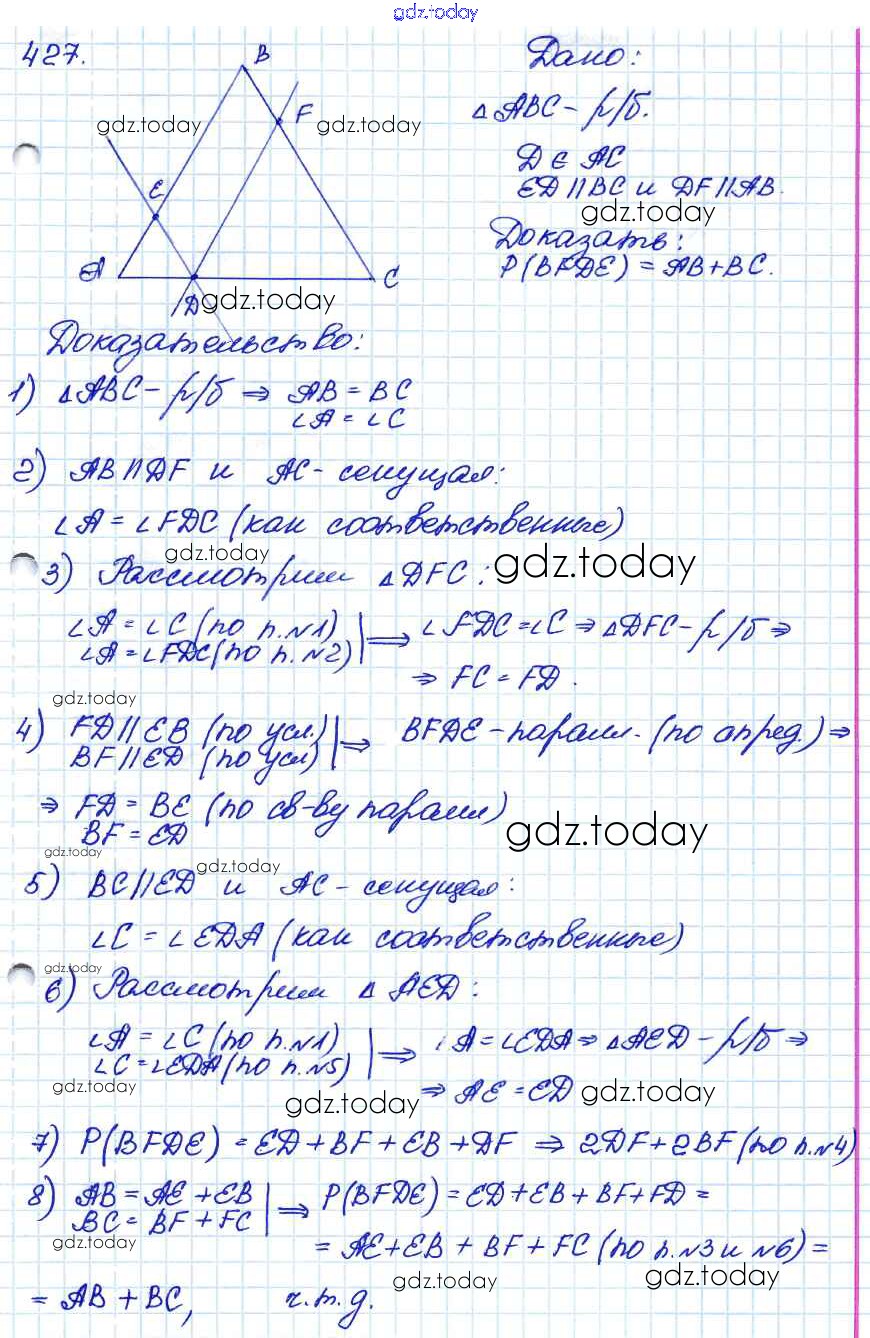 Ответы к Решение. Задачи 427 Учебнику по Геометрии для 7-9 класса Атанасян, Бутузов Просвещение 2010