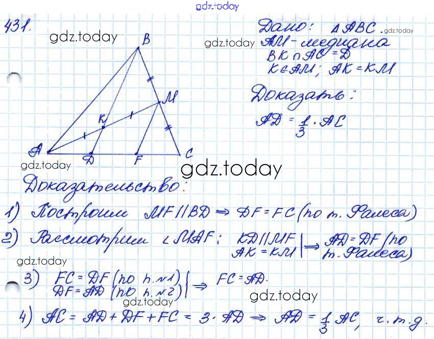 Ответы к Решение. Задачи 431 Учебнику по Геометрии для 7-9 класса Атанасян, Бутузов Просвещение 2010