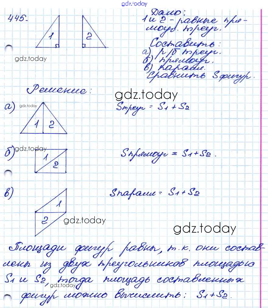 Ответы к Решение. Задачи 445 Учебнику по Геометрии для 7-9 класса Атанасян, Бутузов Просвещение 2010