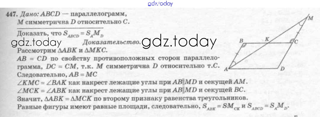 Ответы к Решение. Задачи 447 Учебнику по Геометрии для 7-9 класса Атанасян, Бутузов Просвещение 2010