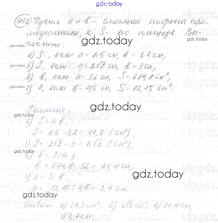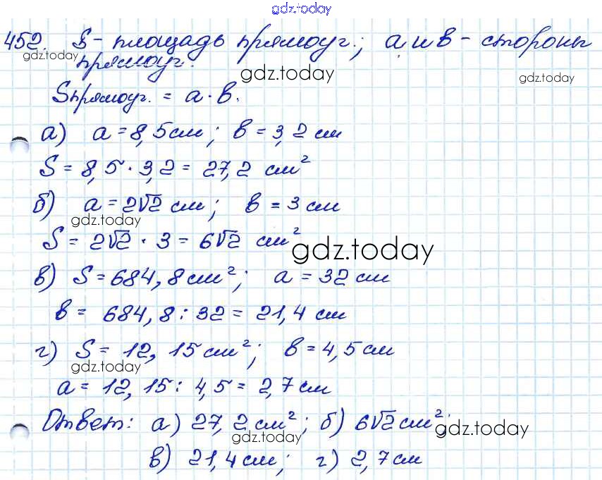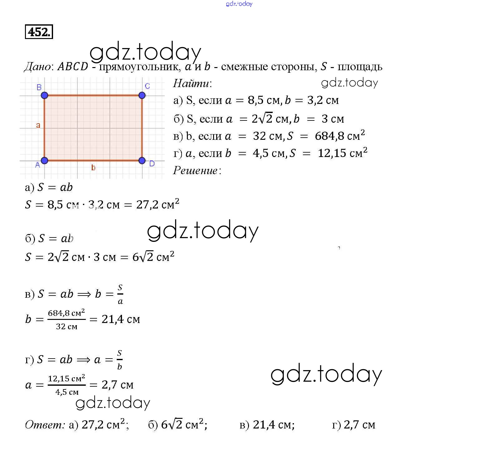 Ответы к Решение. Задачи 452 Учебнику по Геометрии для 7-9 класса Атанасян, Бутузов Просвещение 2010