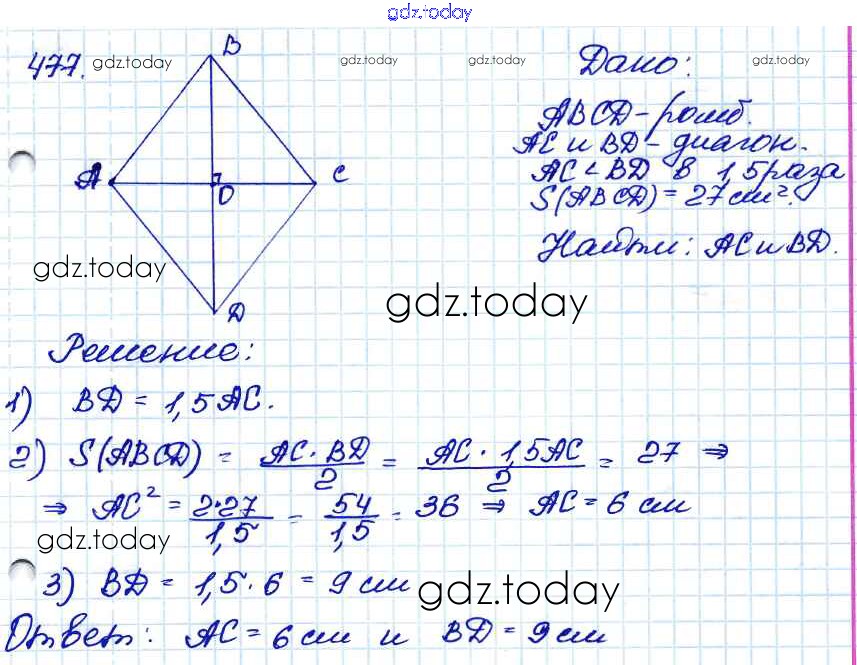 Ответы к Решение. Задачи 477 Учебнику по Геометрии для 7-9 класса Атанасян, Бутузов Просвещение 2010