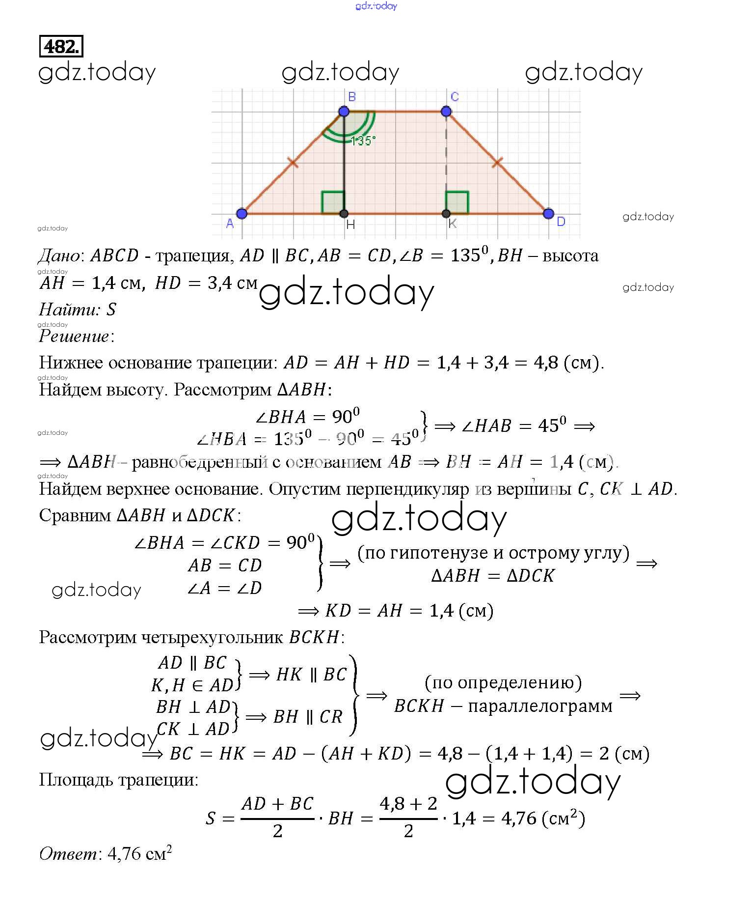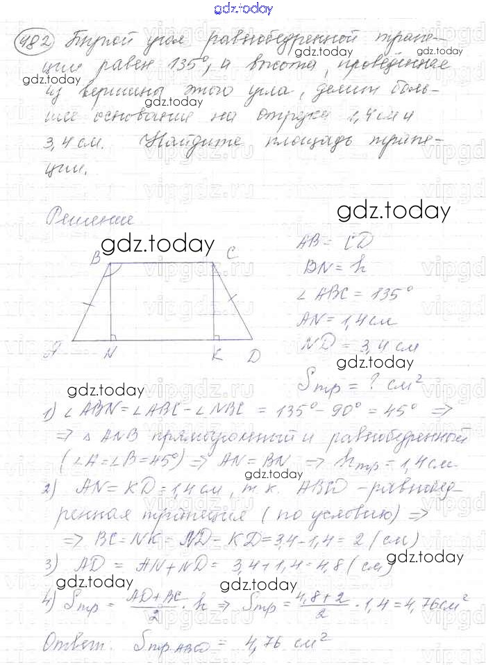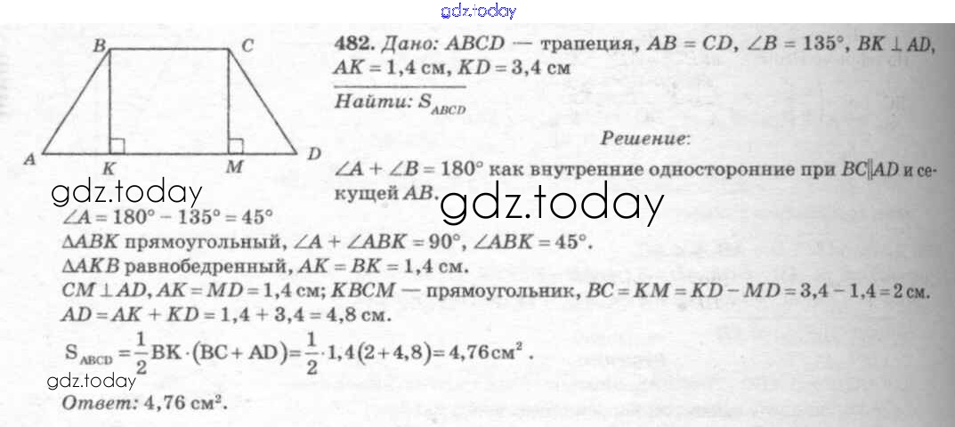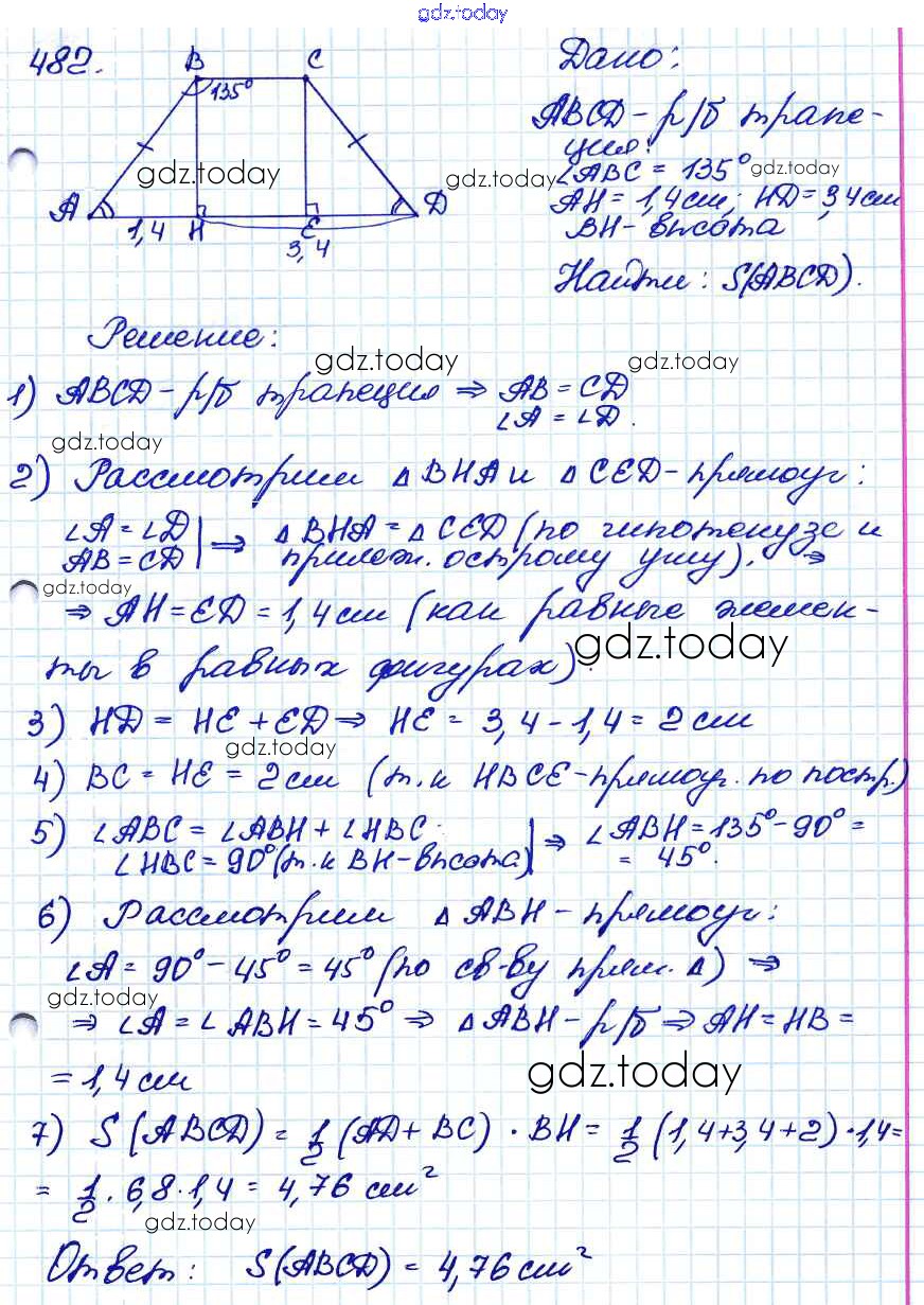Ответы к Решение. Задачи 482 Учебнику по Геометрии для 7-9 класса Атанасян, Бутузов Просвещение 2010
