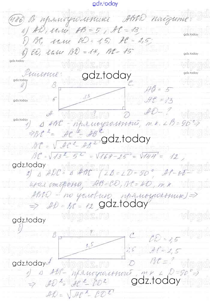 На страницах сайта gdz.today вы найдете учебный и вспомогательный материал, направленный на улучшения знаний школьной программы. ГДЗ - онлайн мир знаний Решение. Задачи 486 Учебнику по Геометрии для 7-9 класса Атанасян, Бутузов Просвещение 2010