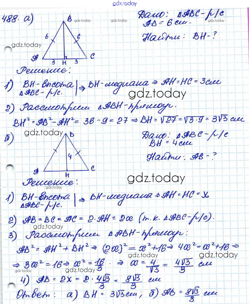 На страницах сайта gdz.today вы найдете учебный и вспомогательный материал, направленный на улучшения знаний школьной программы. ГДЗ - онлайн мир знаний Решение. Задачи 488 Учебнику по Геометрии для 7-9 класса Атанасян, Бутузов Просвещение 2010