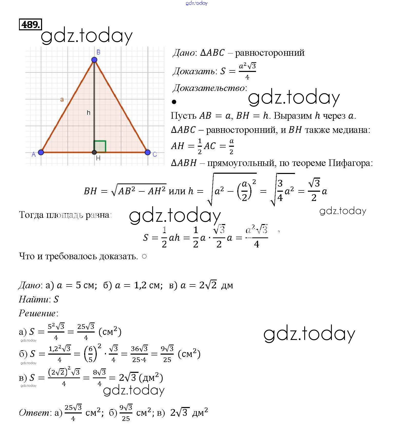 На страницах сайта gdz.today вы найдете учебный и вспомогательный материал, направленный на улучшения знаний школьной программы. ГДЗ - онлайн мир знаний Решение. Задачи 489 Учебнику по Геометрии для 7-9 класса Атанасян, Бутузов Просвещение 2010