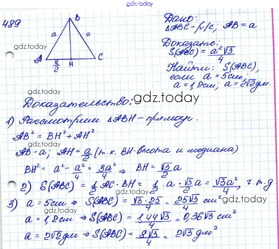 Ответы к Решение. Задачи 489 Учебнику по Геометрии для 7-9 класса Атанасян, Бутузов Просвещение 2010