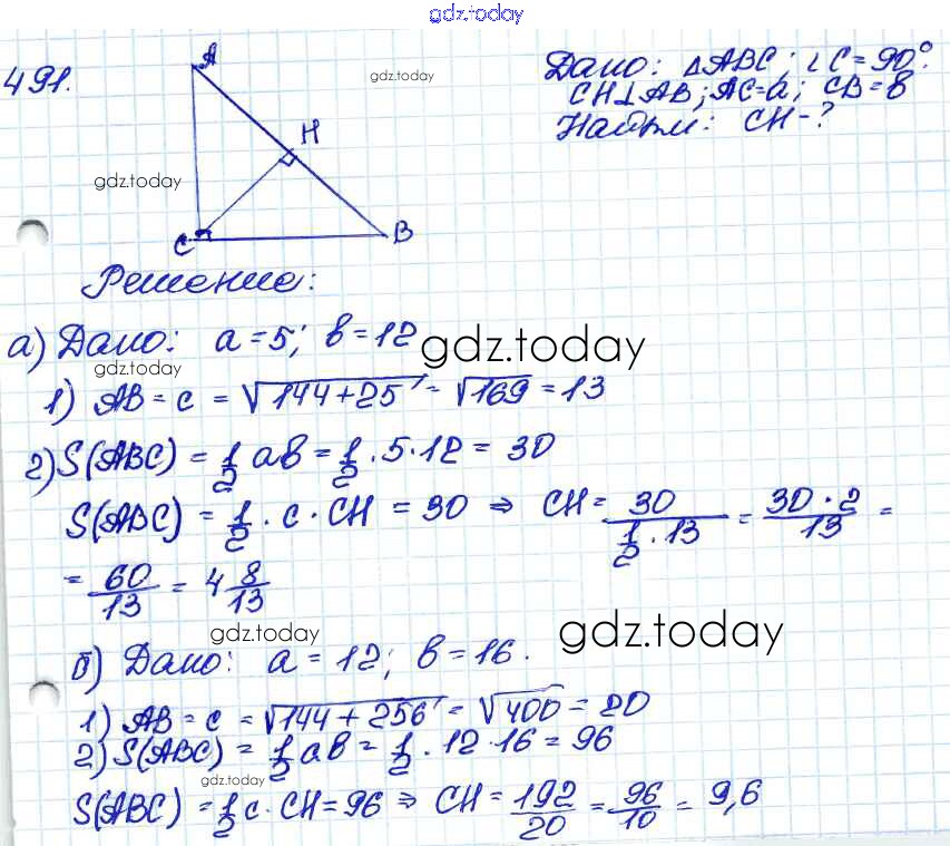 Ответы к Решение. Задачи 491 Учебнику по Геометрии для 7-9 класса Атанасян, Бутузов Просвещение 2010