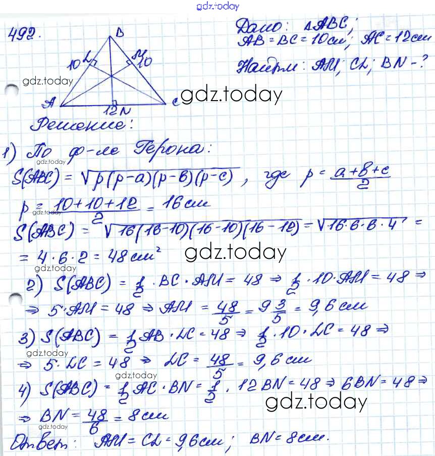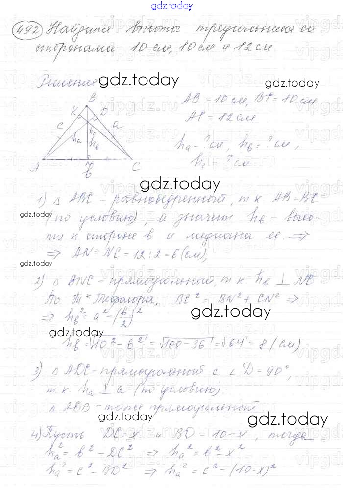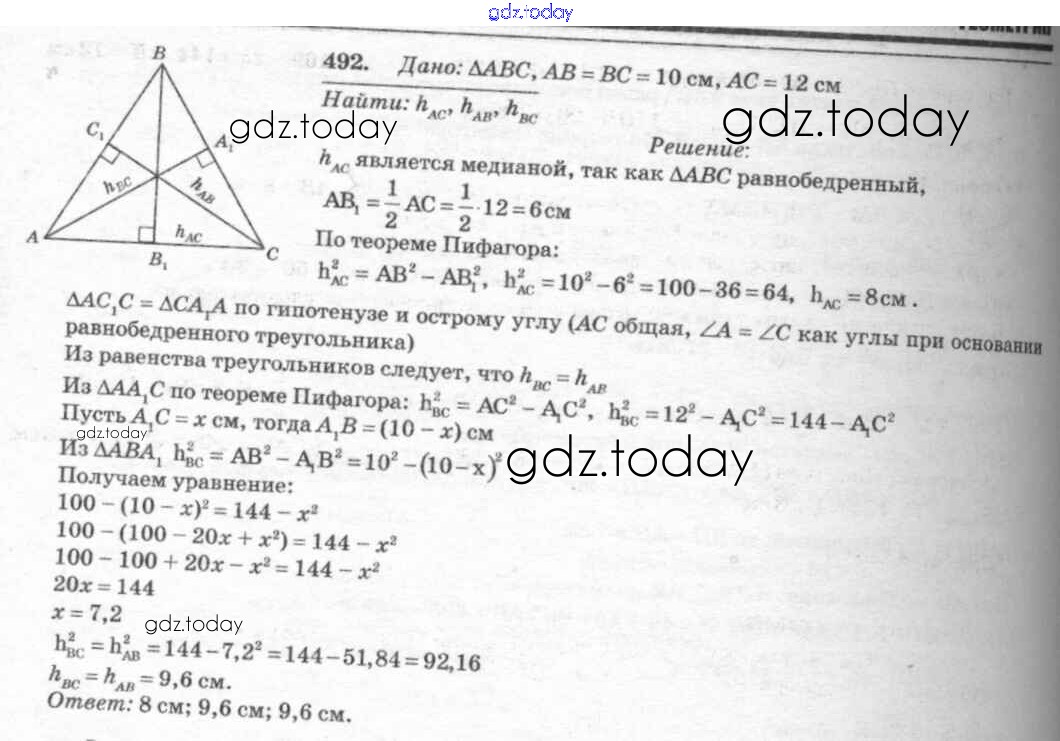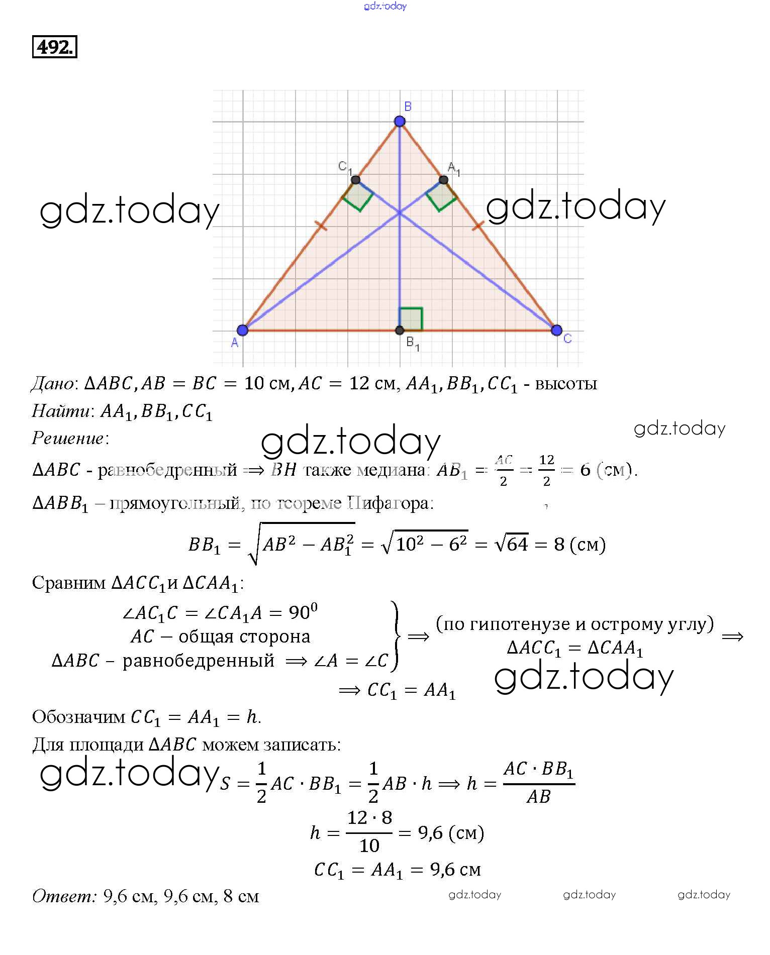 Ответы к Решение. Задачи 492 Учебнику по Геометрии для 7-9 класса Атанасян, Бутузов Просвещение 2010