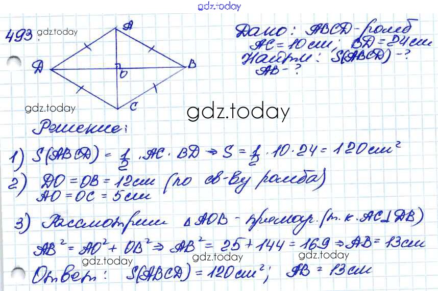Ответы к Решение. Задачи 493 Учебнику по Геометрии для 7-9 класса Атанасян, Бутузов Просвещение 2010