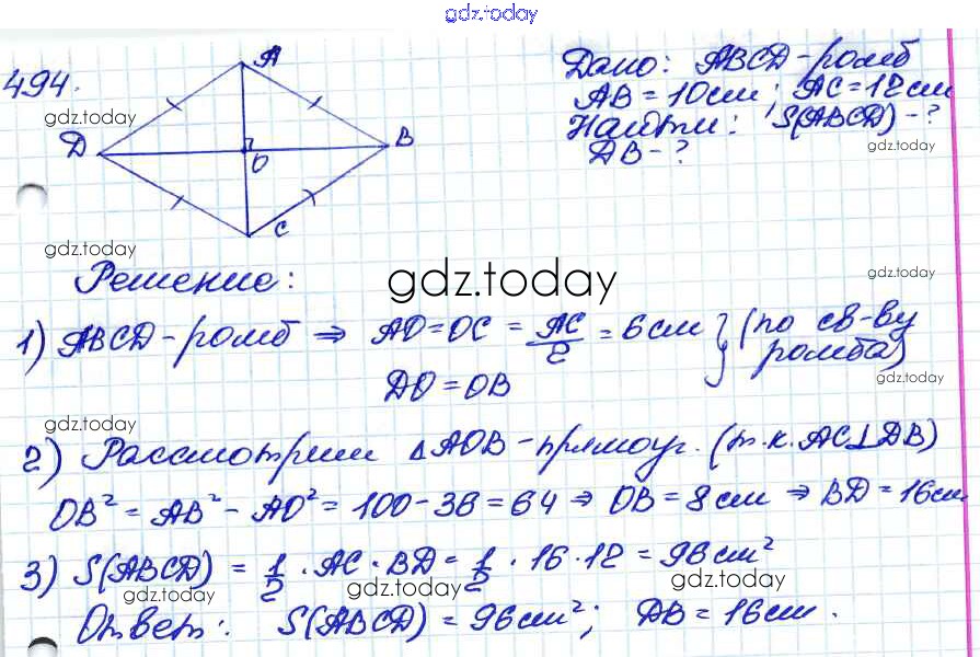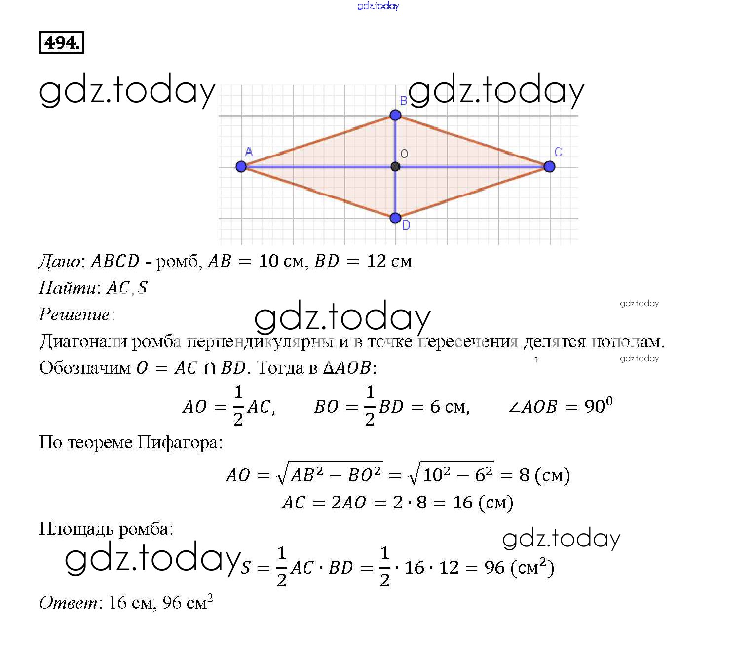 Ответы к Решение. Задачи 494 Учебнику по Геометрии для 7-9 класса Атанасян, Бутузов Просвещение 2010