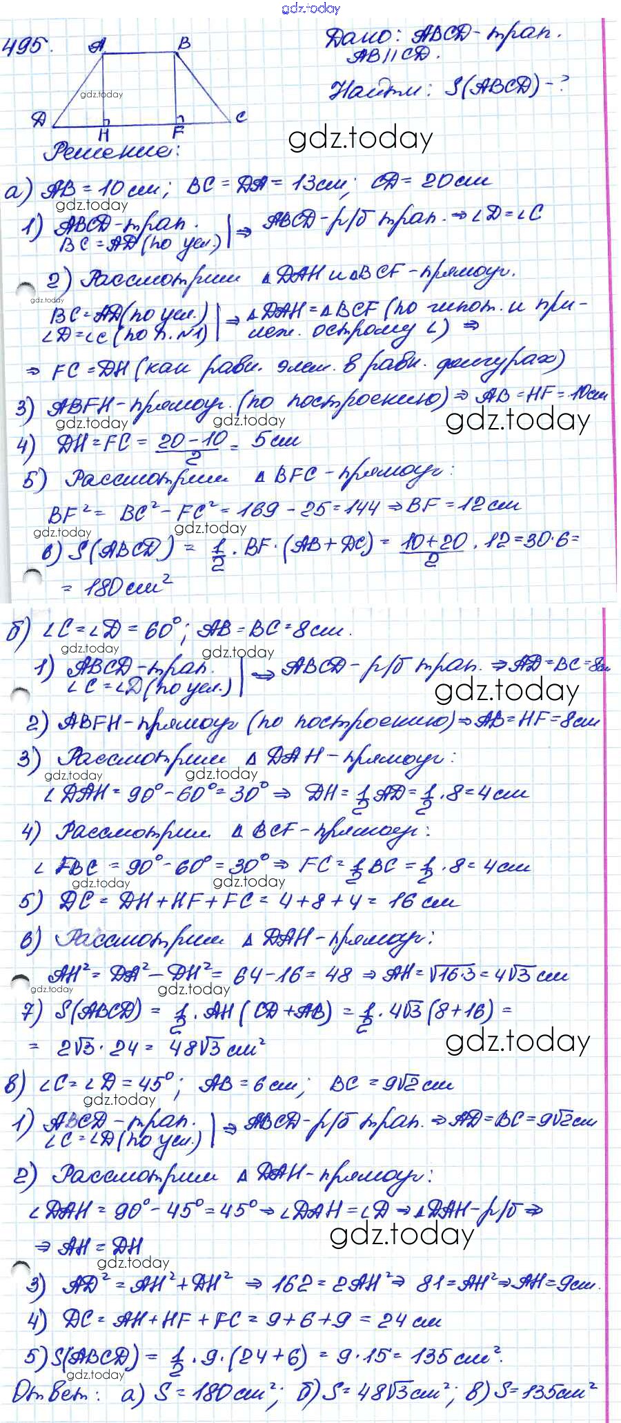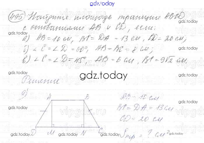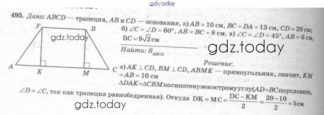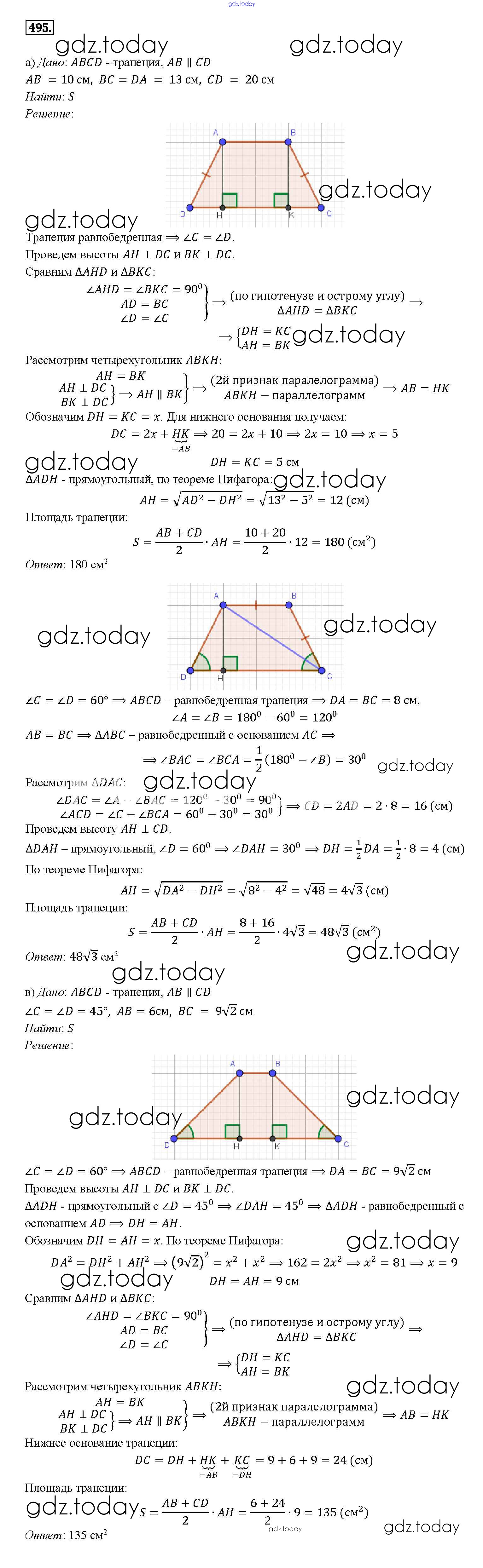 Ответы к Решение. Задачи 495 Учебнику по Геометрии для 7-9 класса Атанасян, Бутузов Просвещение 2010