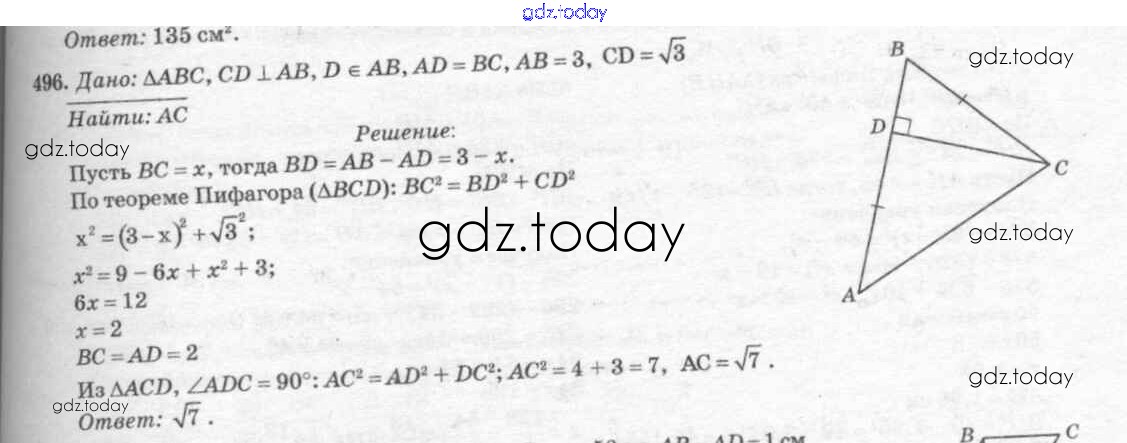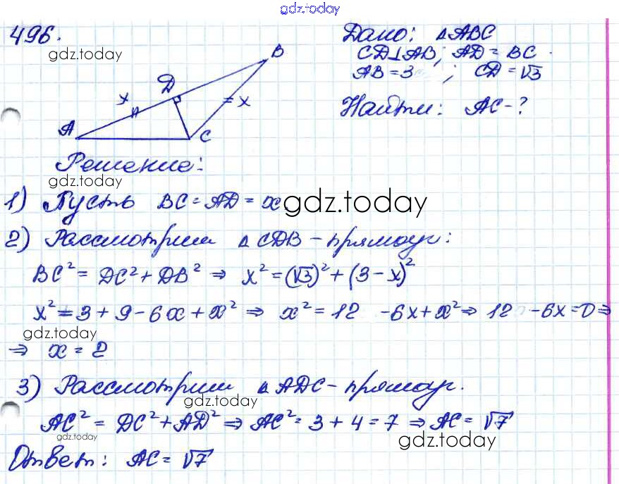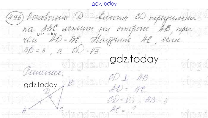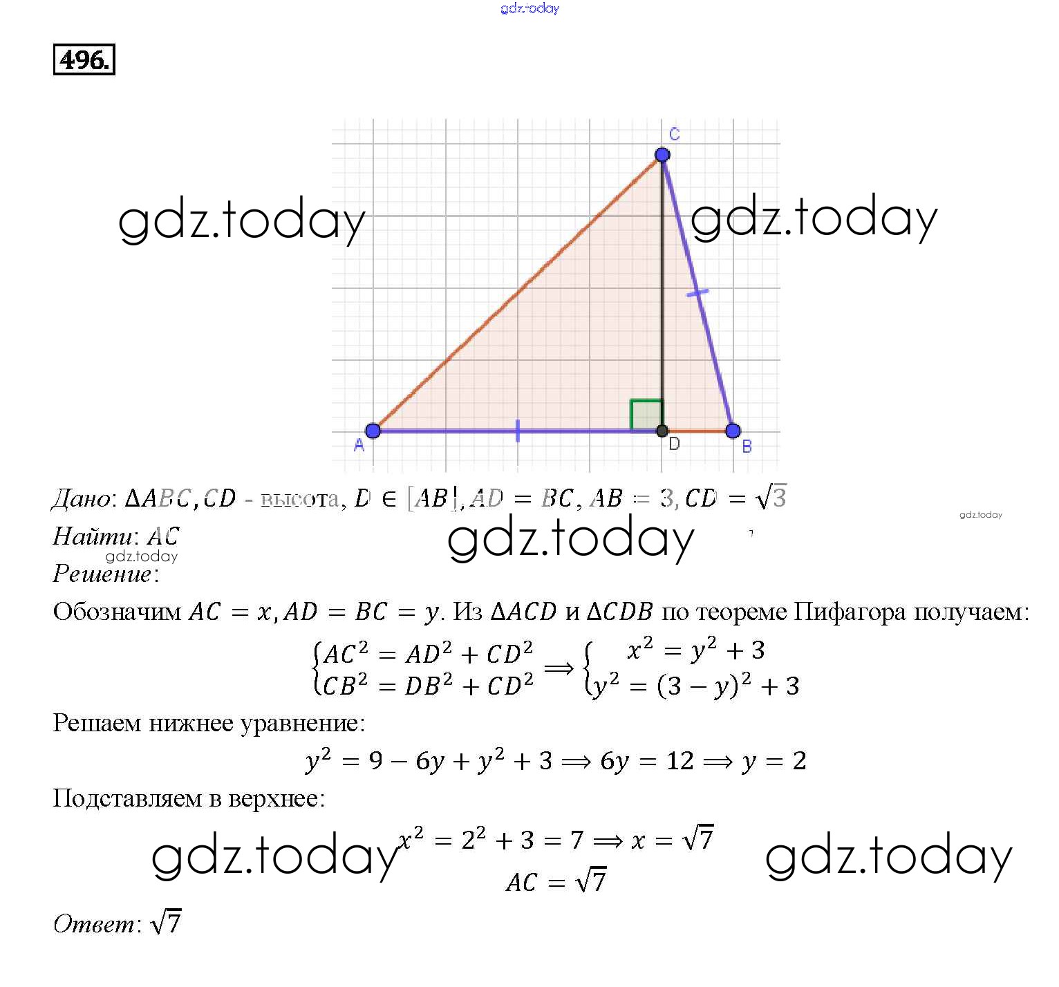 На страницах сайта gdz.today вы найдете учебный и вспомогательный материал, направленный на улучшения знаний школьной программы. ГДЗ - онлайн мир знаний Решение. Задачи 496 Учебнику по Геометрии для 7-9 класса Атанасян, Бутузов Просвещение 2010