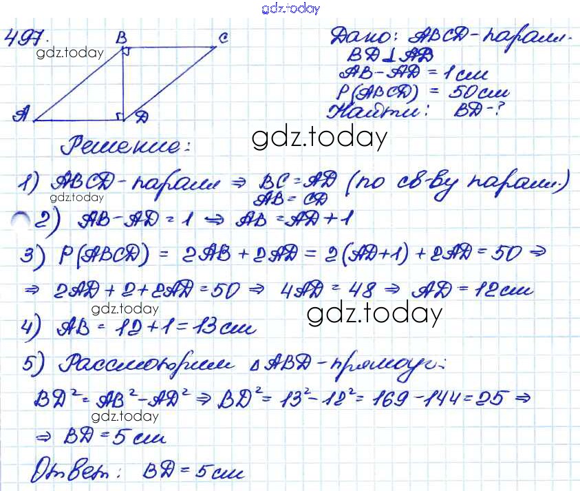 На страницах сайта gdz.today вы найдете учебный и вспомогательный материал, направленный на улучшения знаний школьной программы. ГДЗ - онлайн мир знаний Решение. Задачи 497 Учебнику по Геометрии для 7-9 класса Атанасян, Бутузов Просвещение 2010