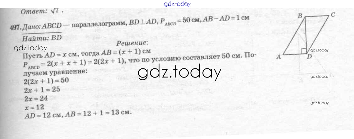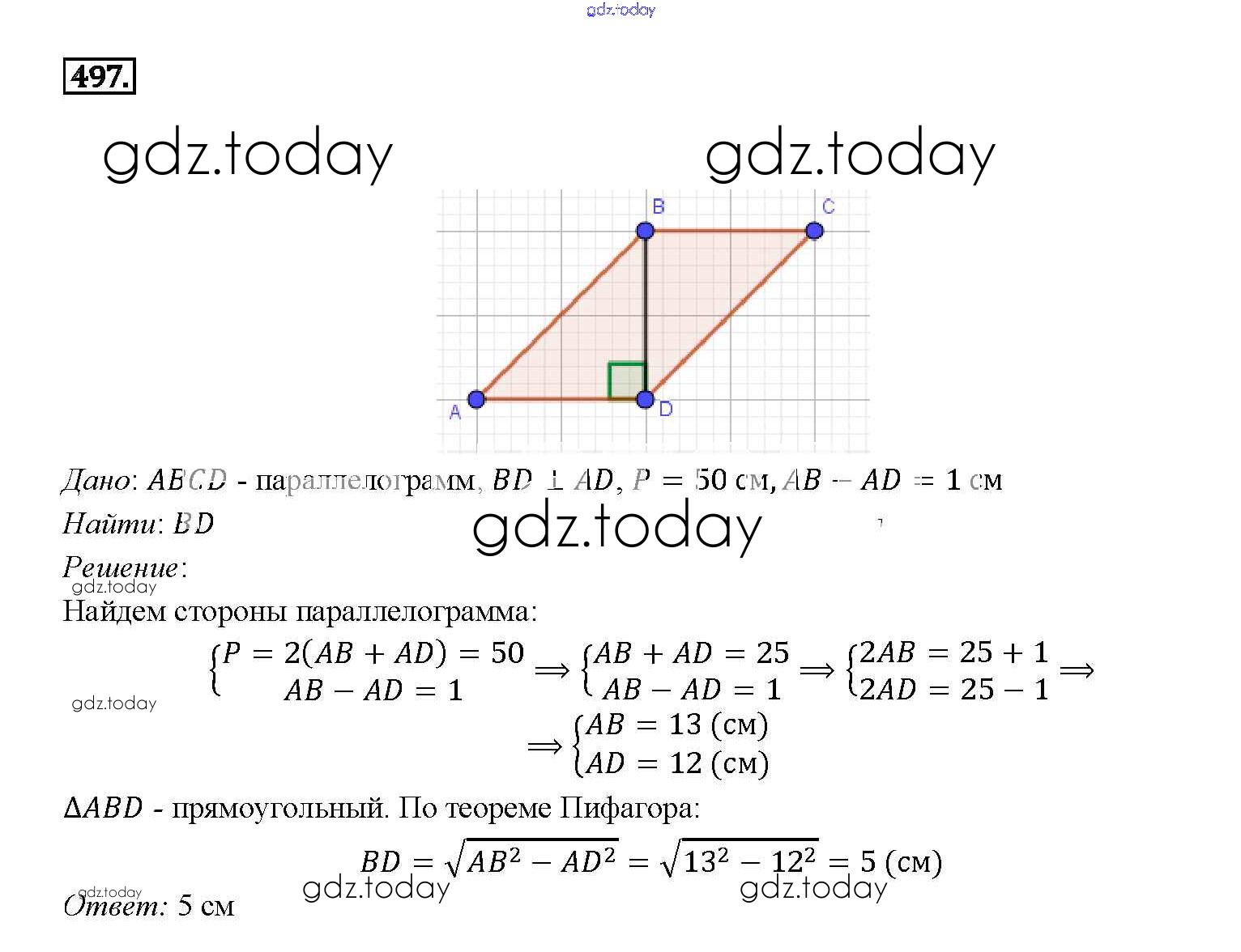 Ответы к Решение. Задачи 497 Учебнику по Геометрии для 7-9 класса Атанасян, Бутузов Просвещение 2010