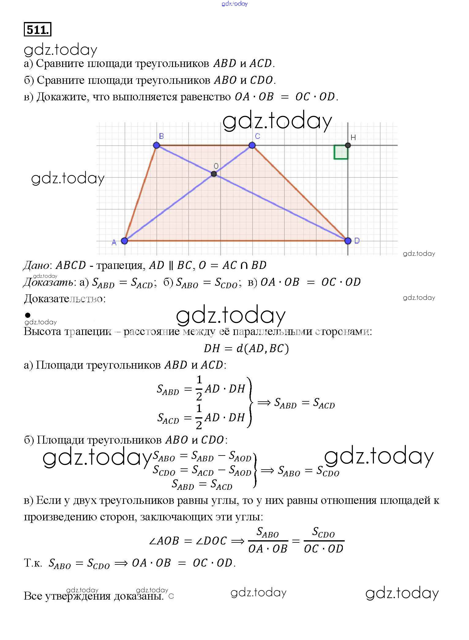 На страницах сайта gdz.today вы найдете учебный и вспомогательный материал, направленный на улучшения знаний школьной программы. ГДЗ - онлайн мир знаний Решение. Задачи 511 Учебнику по Геометрии для 7-9 класса Атанасян, Бутузов Просвещение 2010