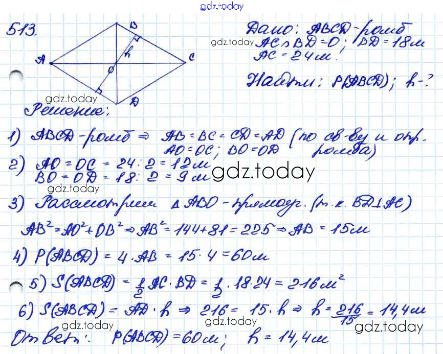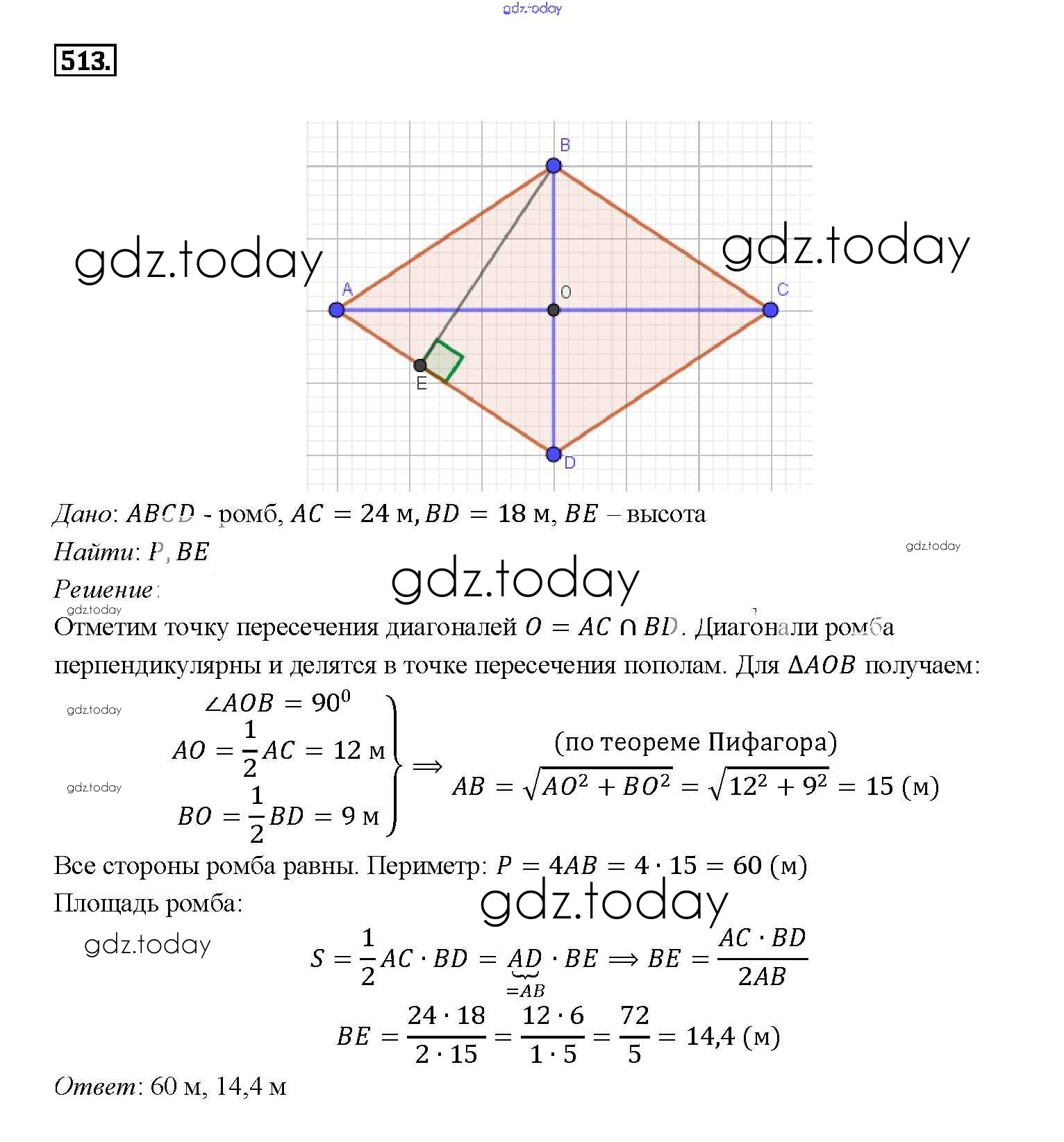 Ответы к Решение. Задачи 513 Учебнику по Геометрии для 7-9 класса Атанасян, Бутузов Просвещение 2010