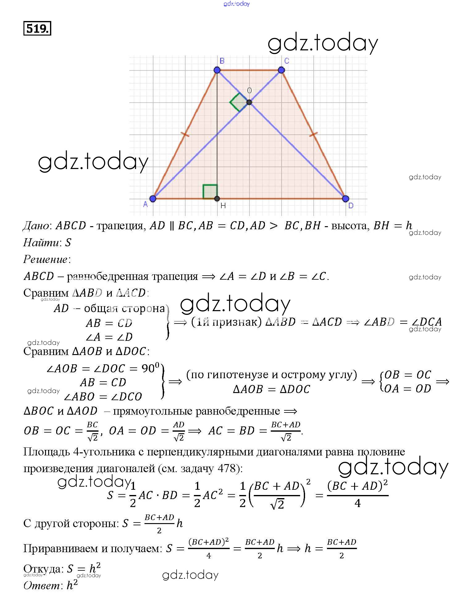 Ответы к Решение. Задачи 519 Учебнику по Геометрии для 7-9 класса Атанасян, Бутузов Просвещение 2010