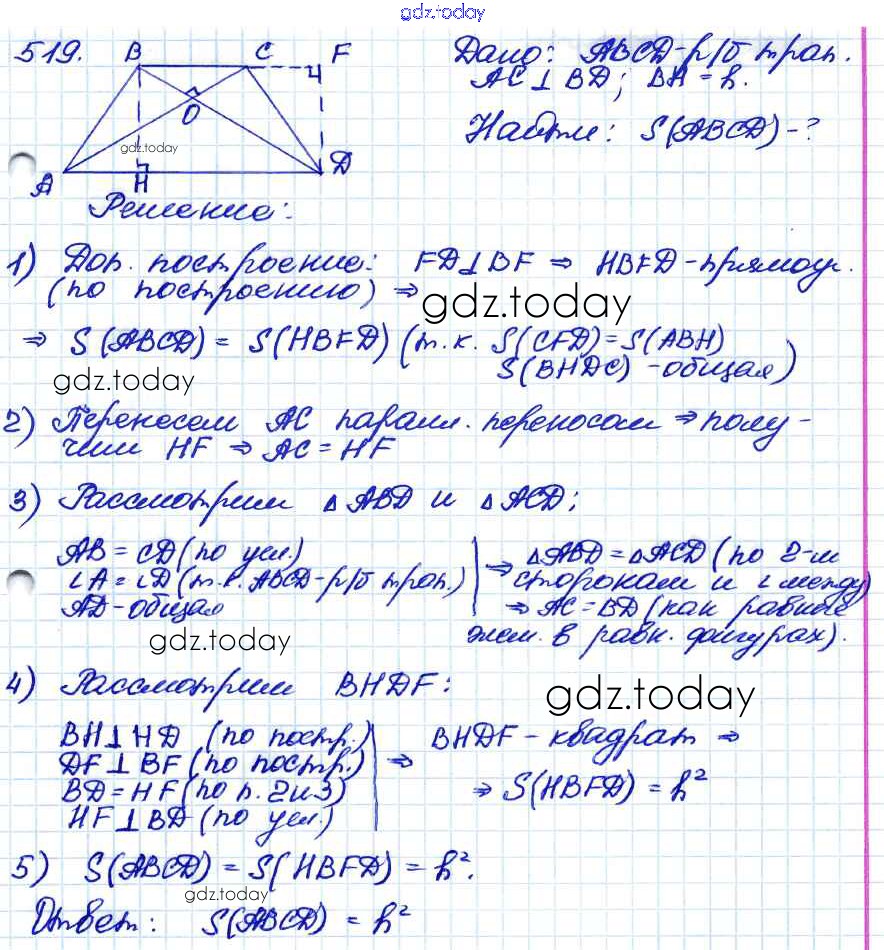 На страницах сайта gdz.today вы найдете учебный и вспомогательный материал, направленный на улучшения знаний школьной программы. ГДЗ - онлайн мир знаний Решение. Задачи 519 Учебнику по Геометрии для 7-9 класса Атанасян, Бутузов Просвещение 2010