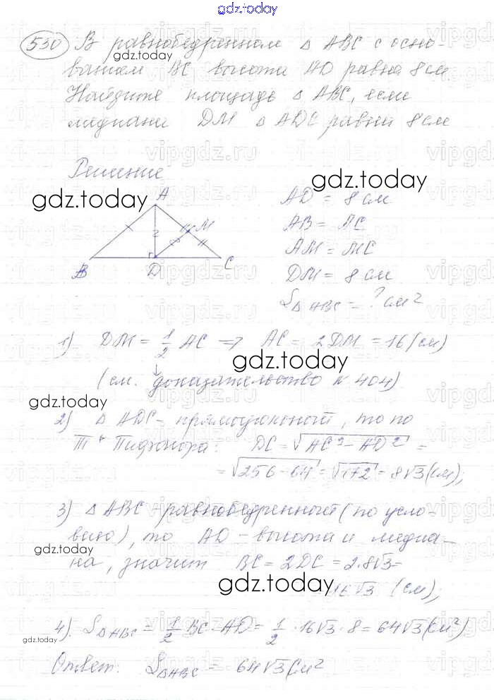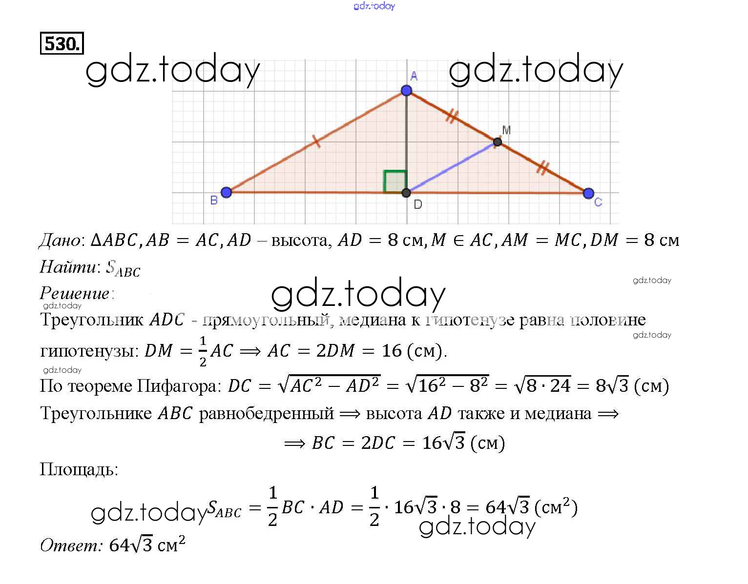 Ответы к Решение. Задачи 530 Учебнику по Геометрии для 7-9 класса Атанасян, Бутузов Просвещение 2010