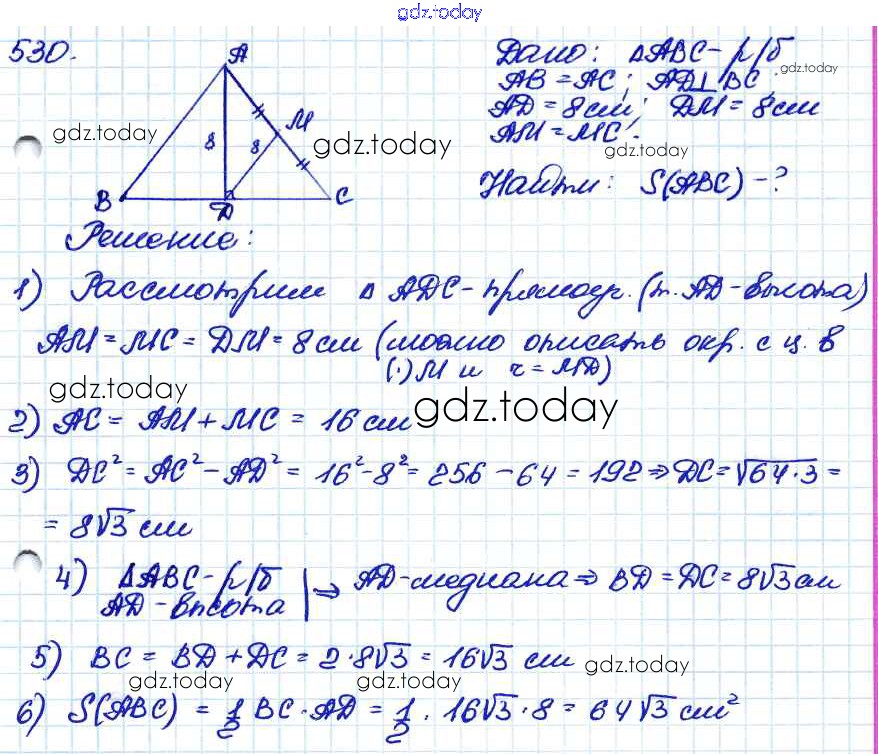На страницах сайта gdz.today вы найдете учебный и вспомогательный материал, направленный на улучшения знаний школьной программы. ГДЗ - онлайн мир знаний Решение. Задачи 530 Учебнику по Геометрии для 7-9 класса Атанасян, Бутузов Просвещение 2010