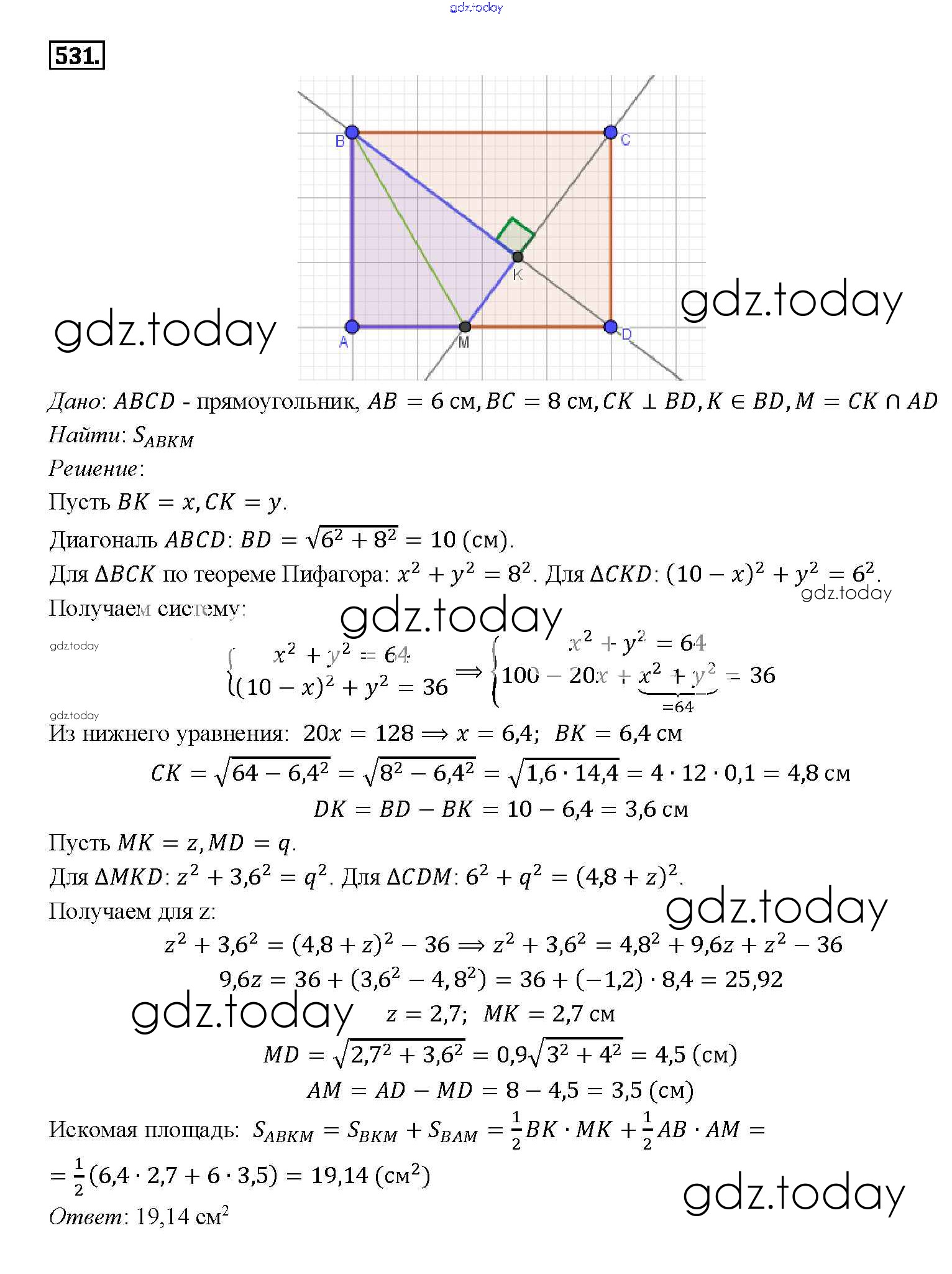 Ответы к Решение. Задачи 531 Учебнику по Геометрии для 7-9 класса Атанасян, Бутузов Просвещение 2010