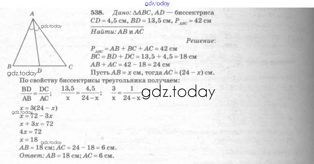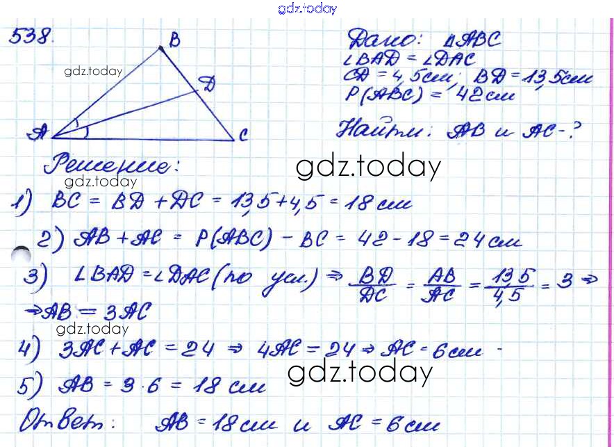Ответы к Решение. Задачи 538 Учебнику по Геометрии для 7-9 класса Атанасян, Бутузов Просвещение 2010