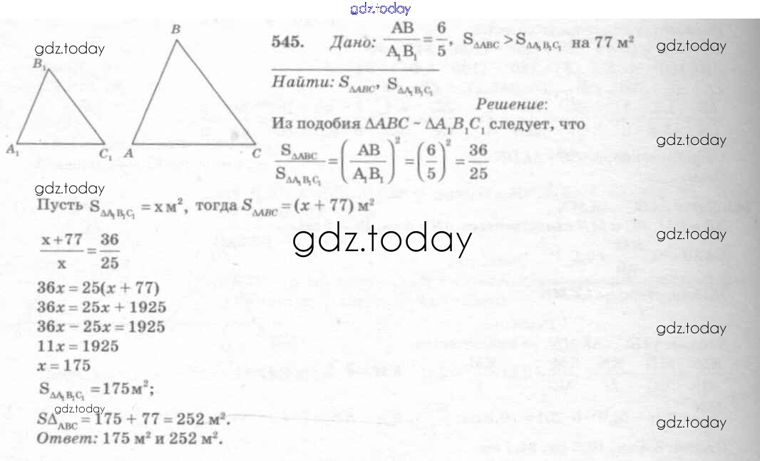 Ответы к Решение. Задачи 545 Учебнику по Геометрии для 7-9 класса Атанасян, Бутузов Просвещение 2010
