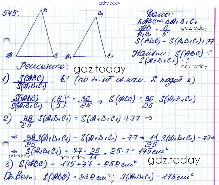 На страницах сайта gdz.today вы найдете учебный и вспомогательный материал, направленный на улучшения знаний школьной программы. ГДЗ - онлайн мир знаний Решение. Задачи 545 Учебнику по Геометрии для 7-9 класса Атанасян, Бутузов Просвещение 2010