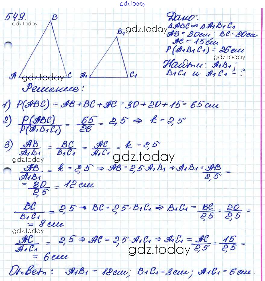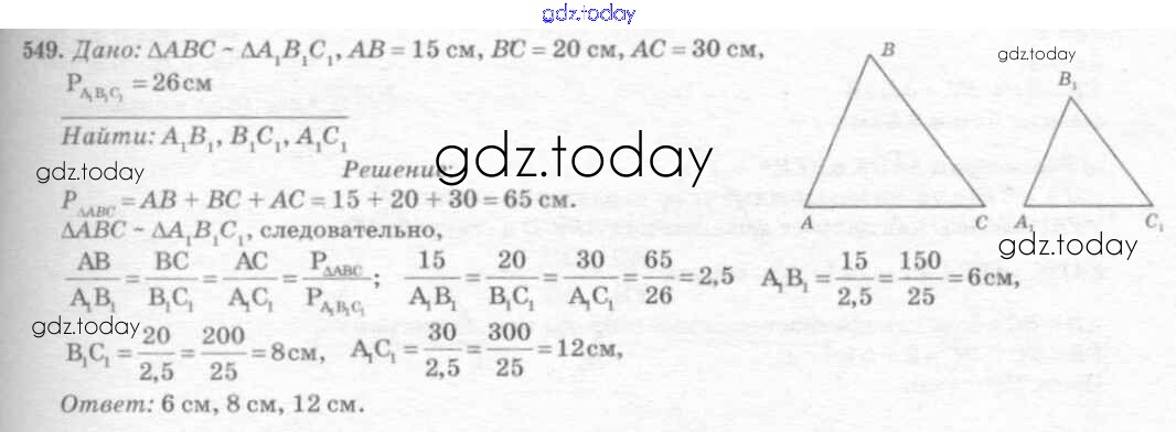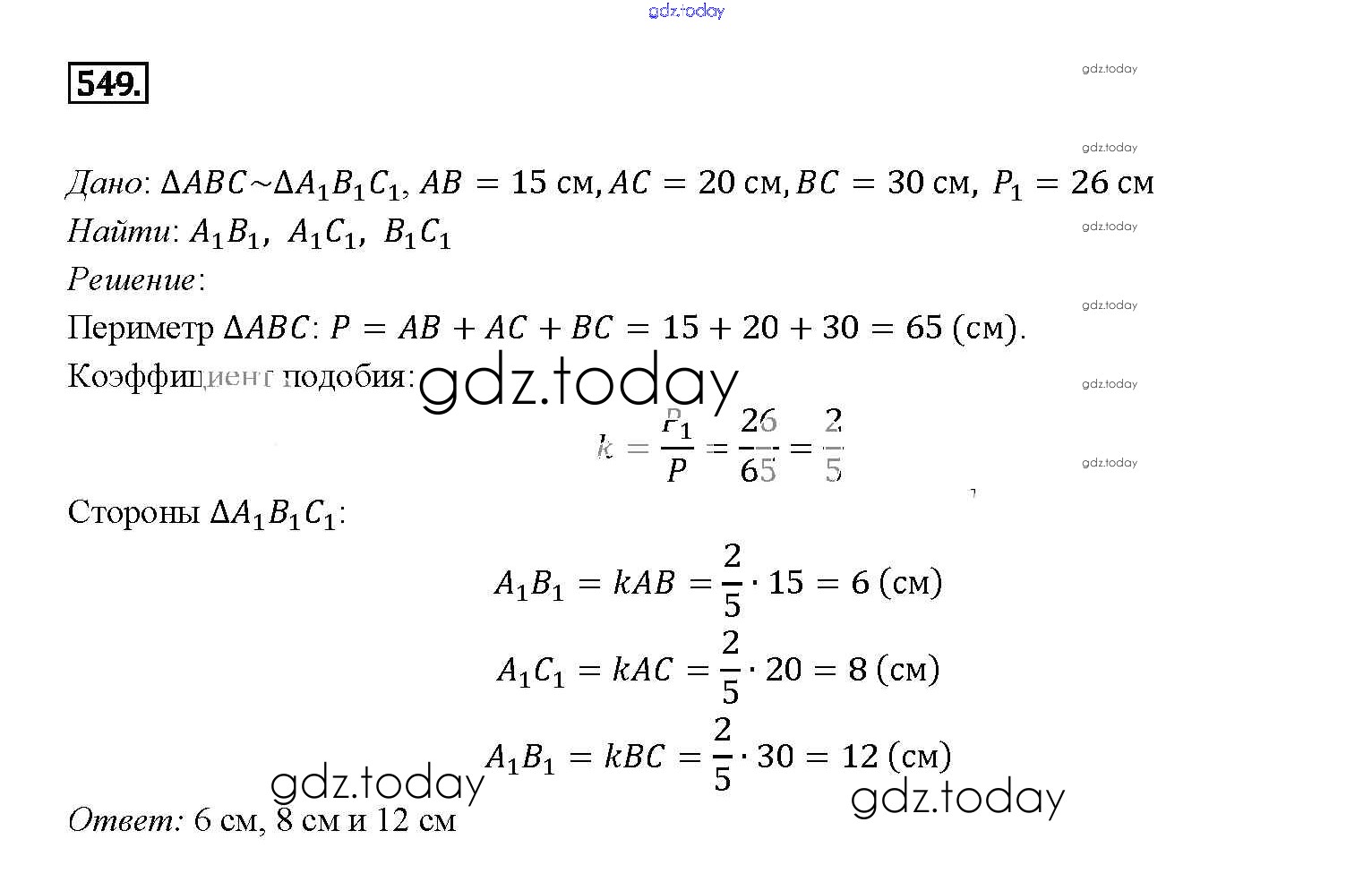 Ответы к Решение. Задачи 549 Учебнику по Геометрии для 7-9 класса Атанасян, Бутузов Просвещение 2010