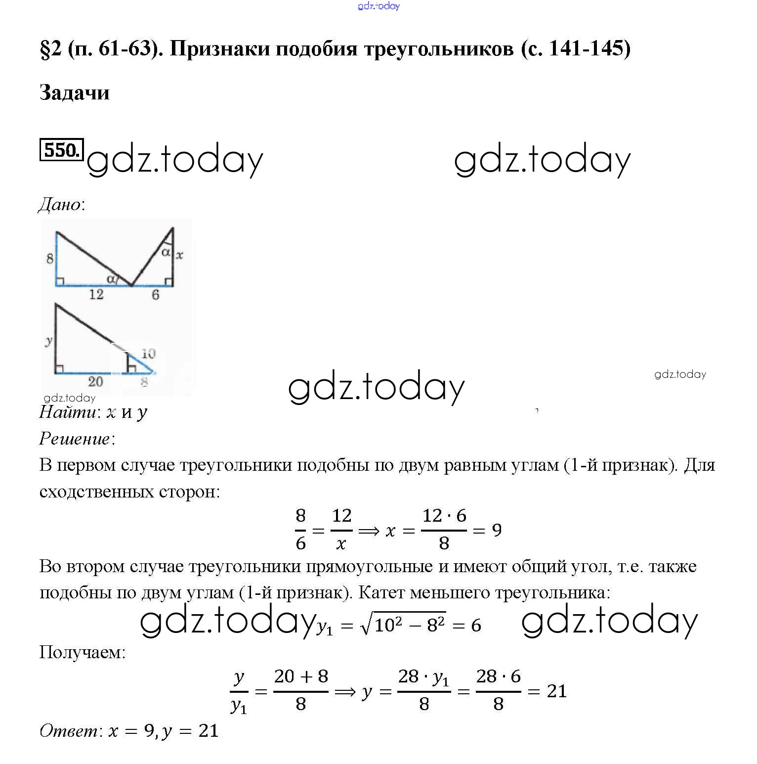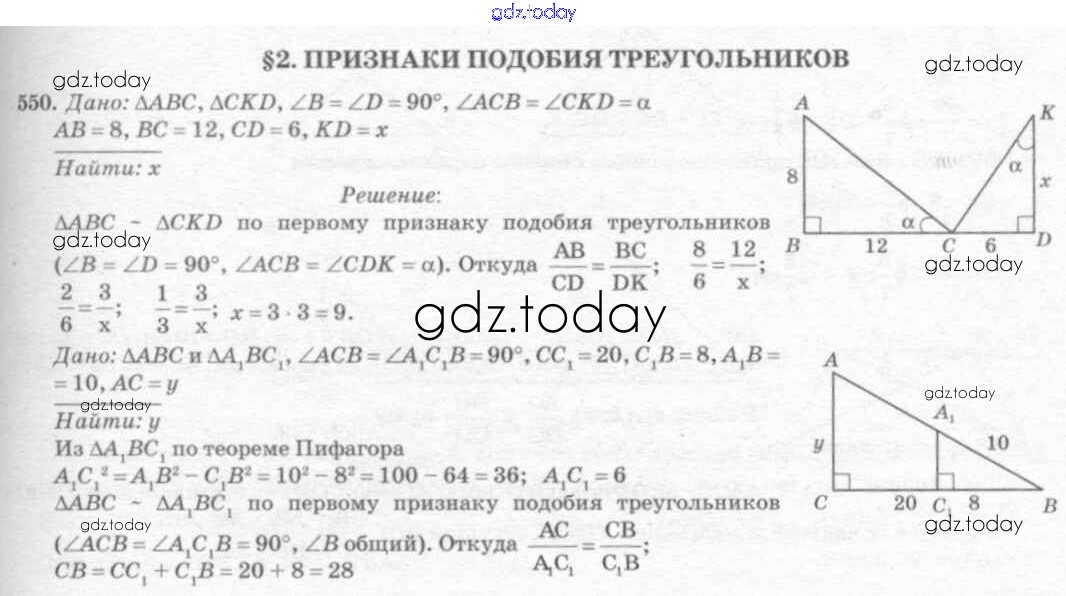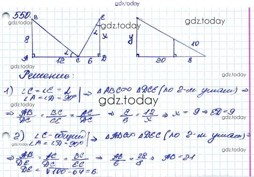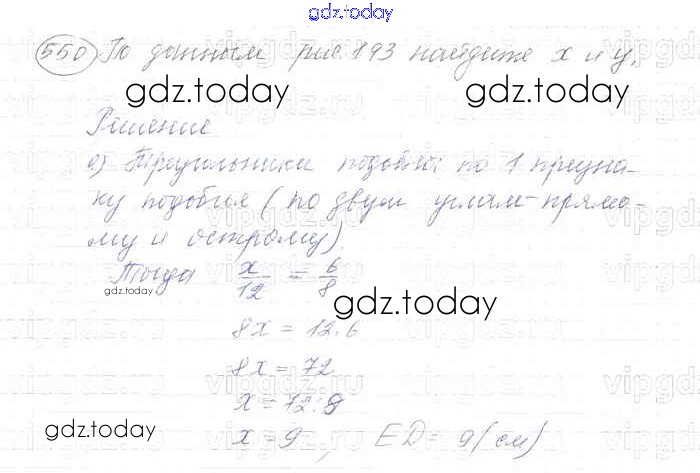 Ответы к Решение. Задачи 550 Учебнику по Геометрии для 7-9 класса Атанасян, Бутузов Просвещение 2010