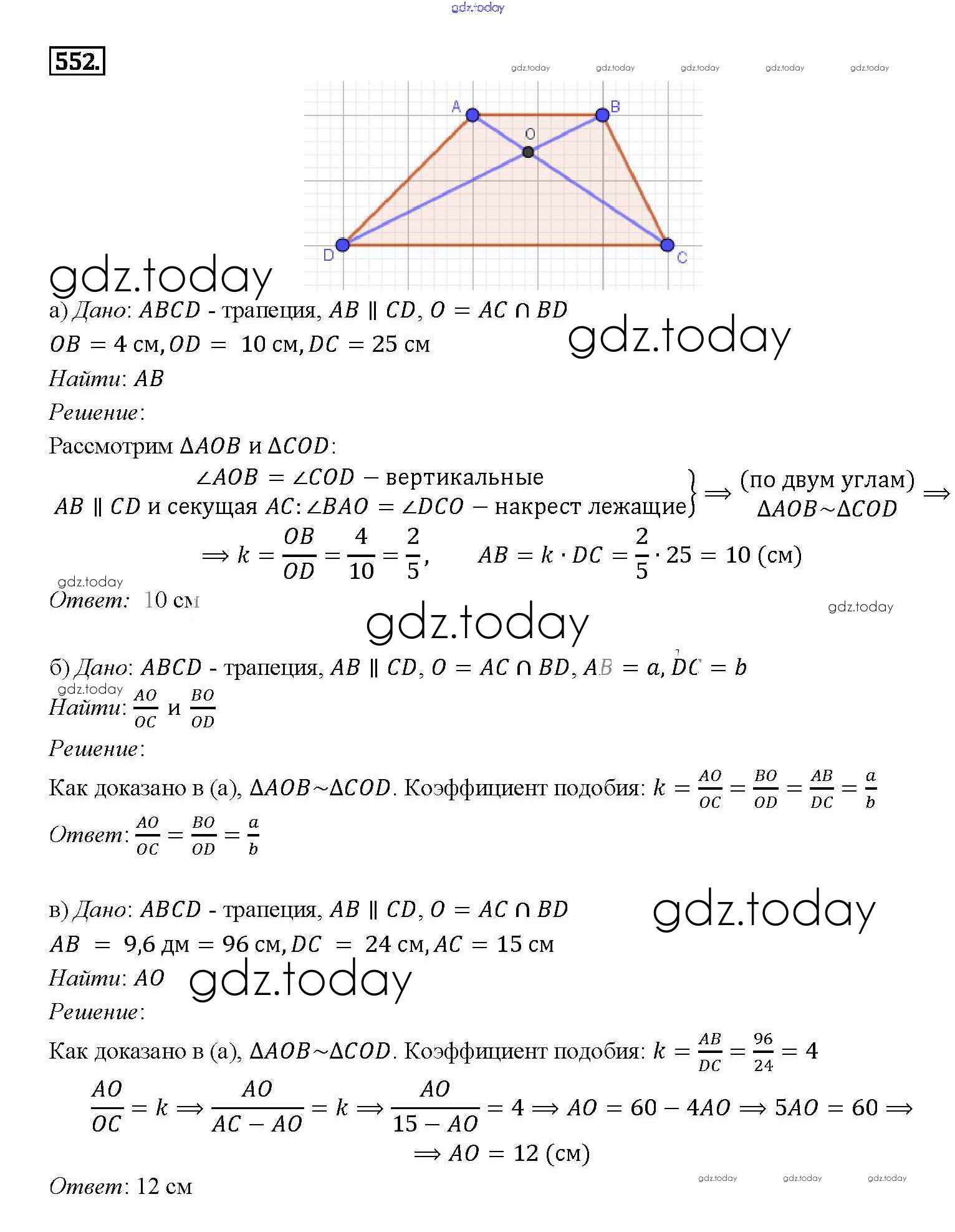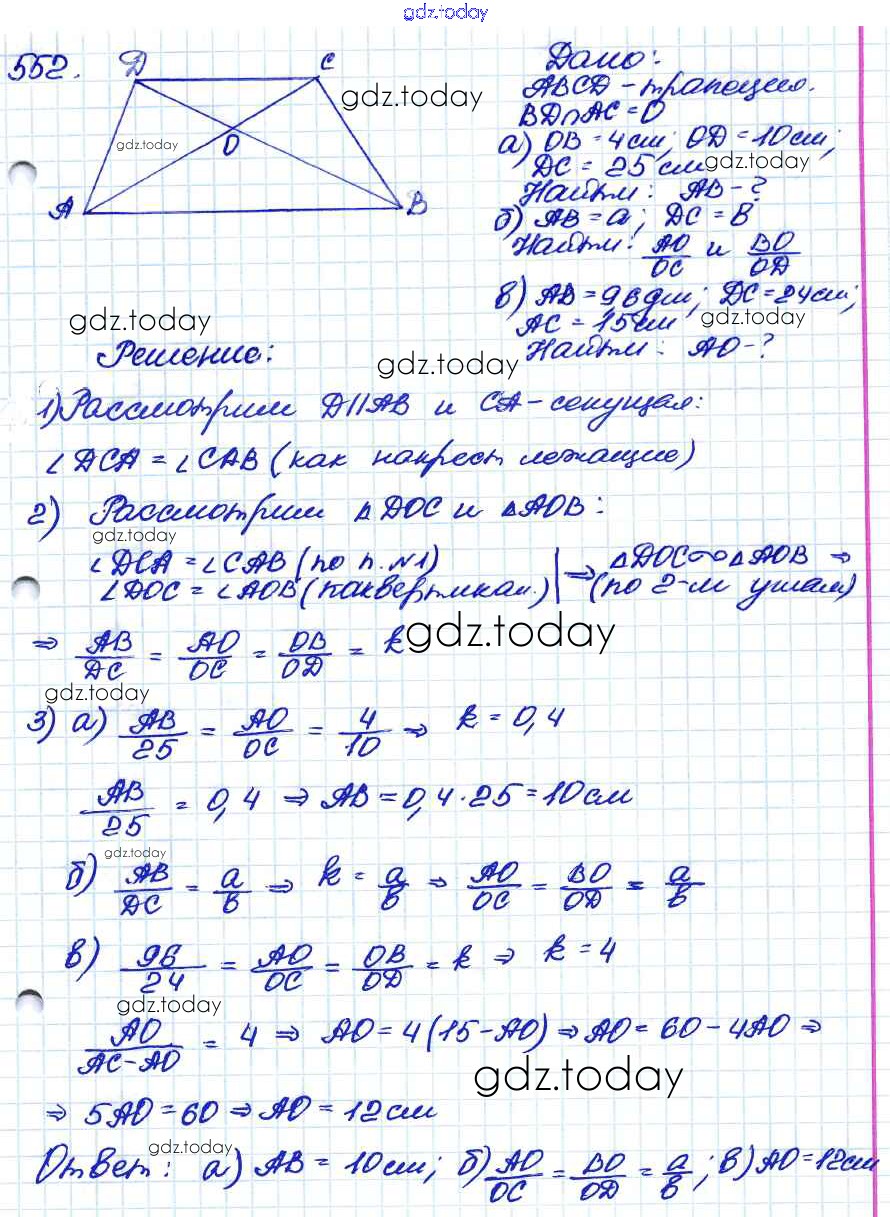 Ответы к Решение. Задачи 552 Учебнику по Геометрии для 7-9 класса Атанасян, Бутузов Просвещение 2010