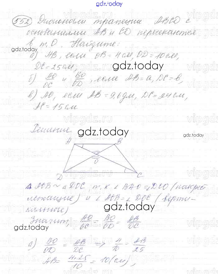 На страницах сайта gdz.today вы найдете учебный и вспомогательный материал, направленный на улучшения знаний школьной программы. ГДЗ - онлайн мир знаний Решение. Задачи 552 Учебнику по Геометрии для 7-9 класса Атанасян, Бутузов Просвещение 2010