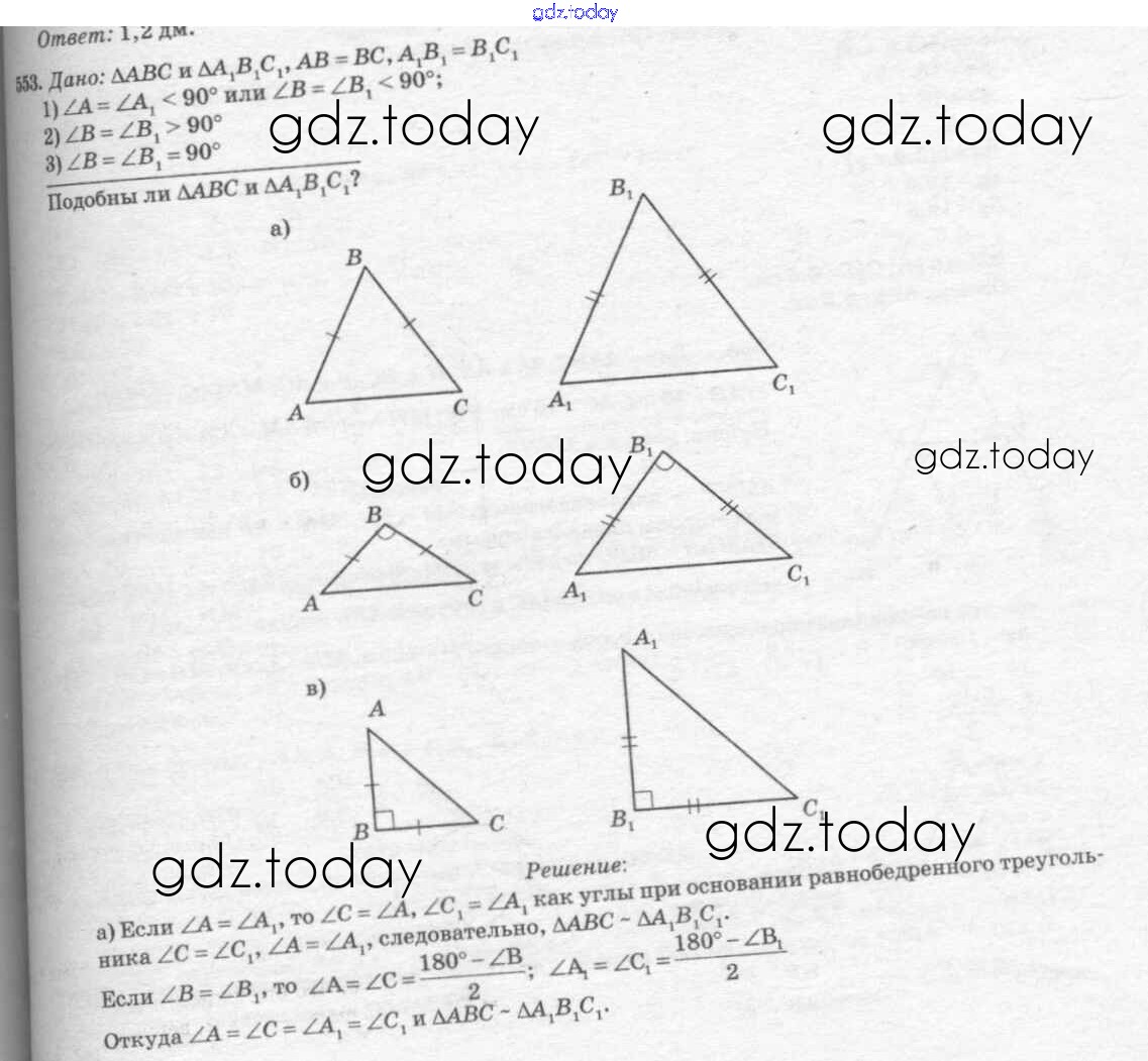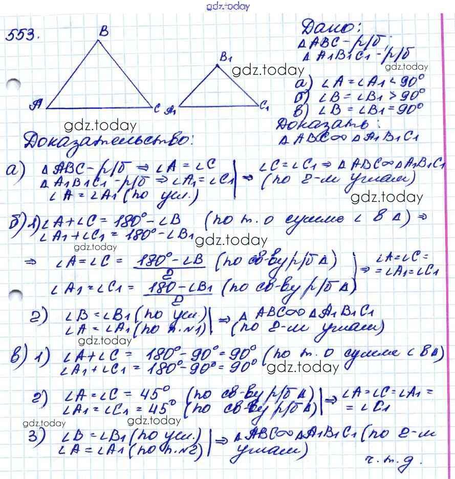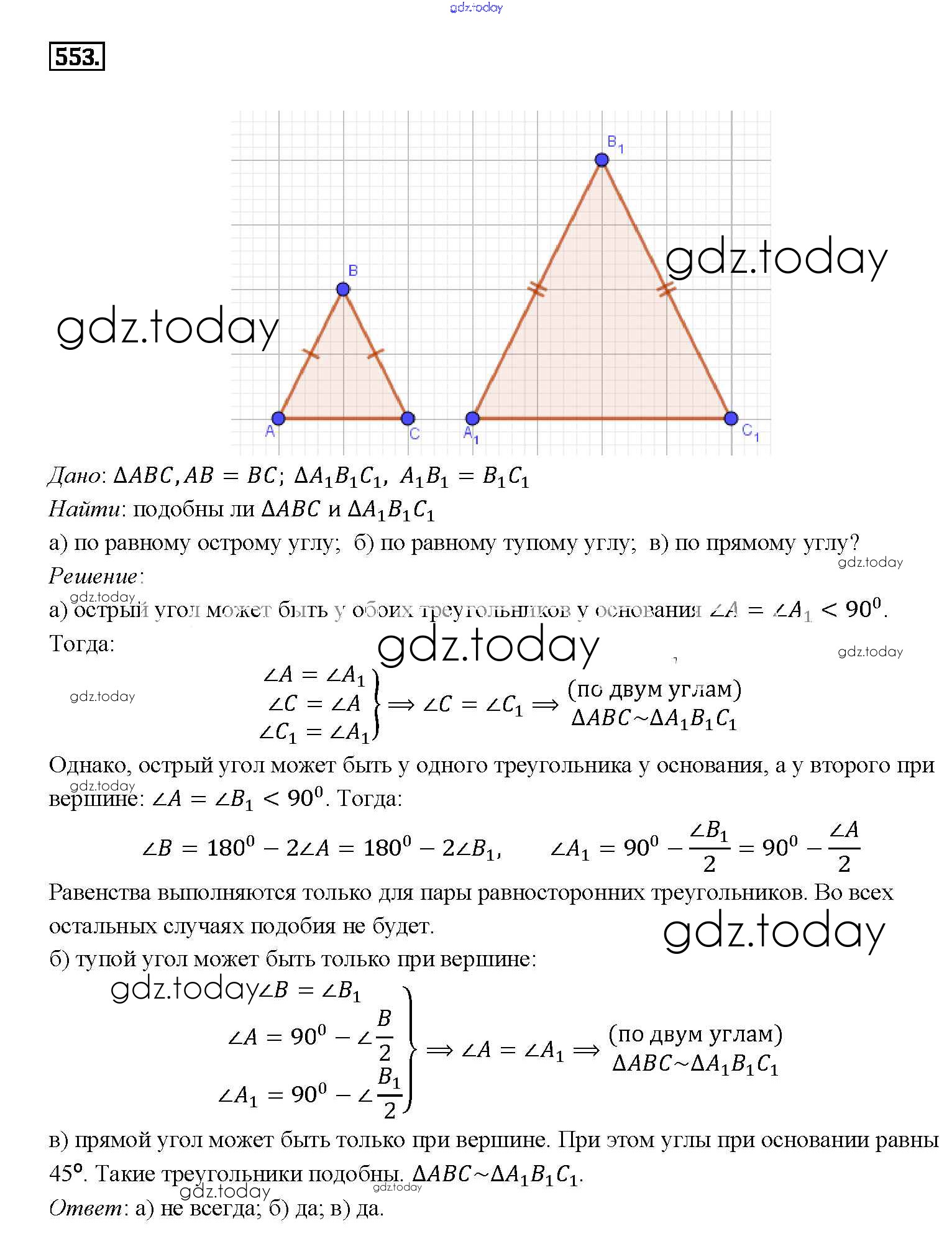 Ответы к Решение. Задачи 553 Учебнику по Геометрии для 7-9 класса Атанасян, Бутузов Просвещение 2010