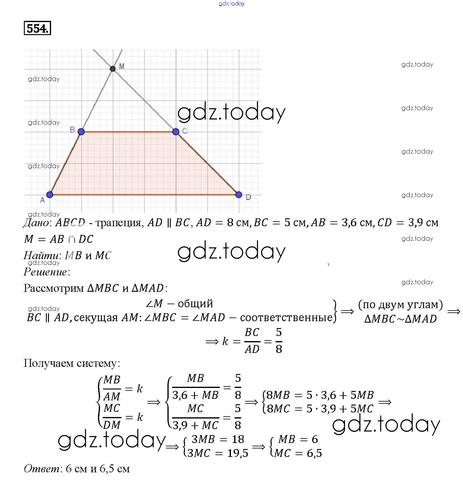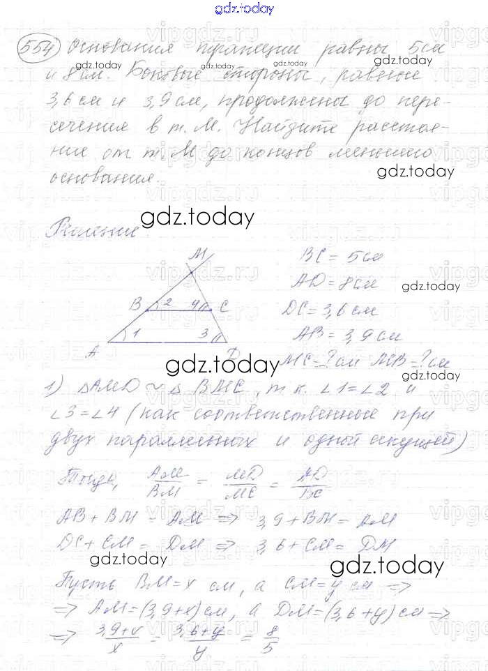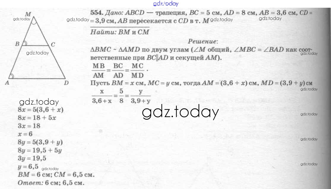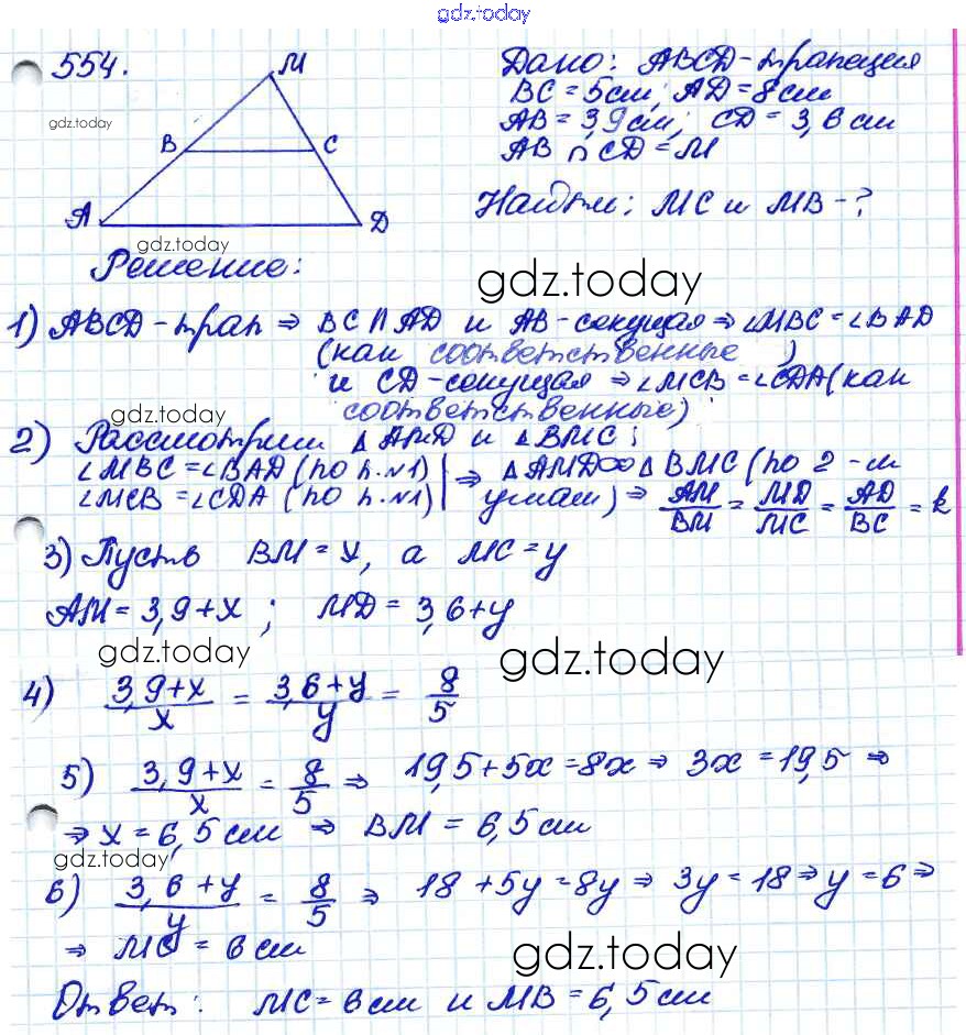 Ответы к Решение. Задачи 554 Учебнику по Геометрии для 7-9 класса Атанасян, Бутузов Просвещение 2010