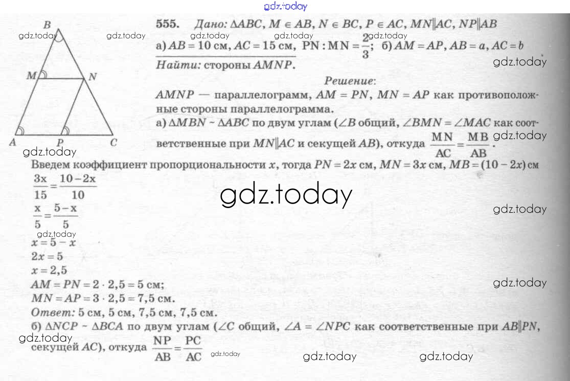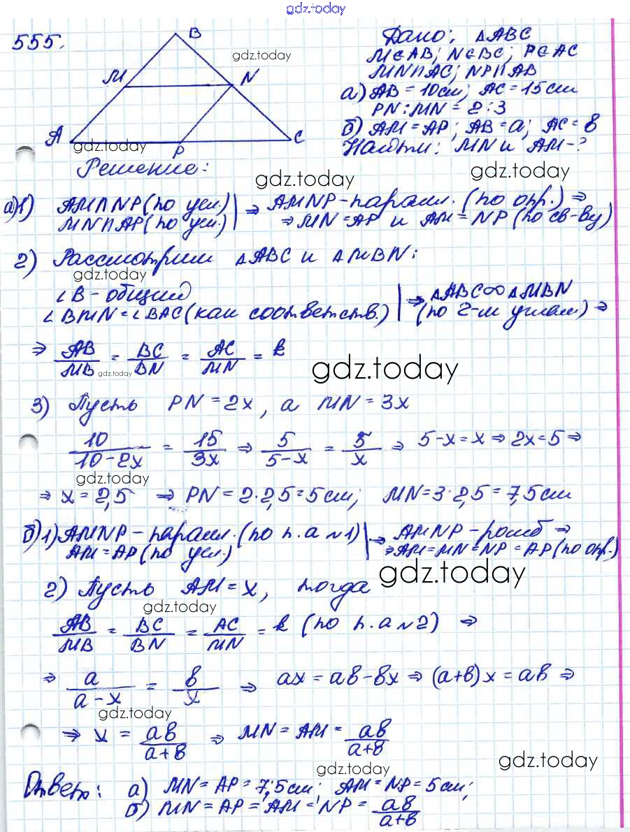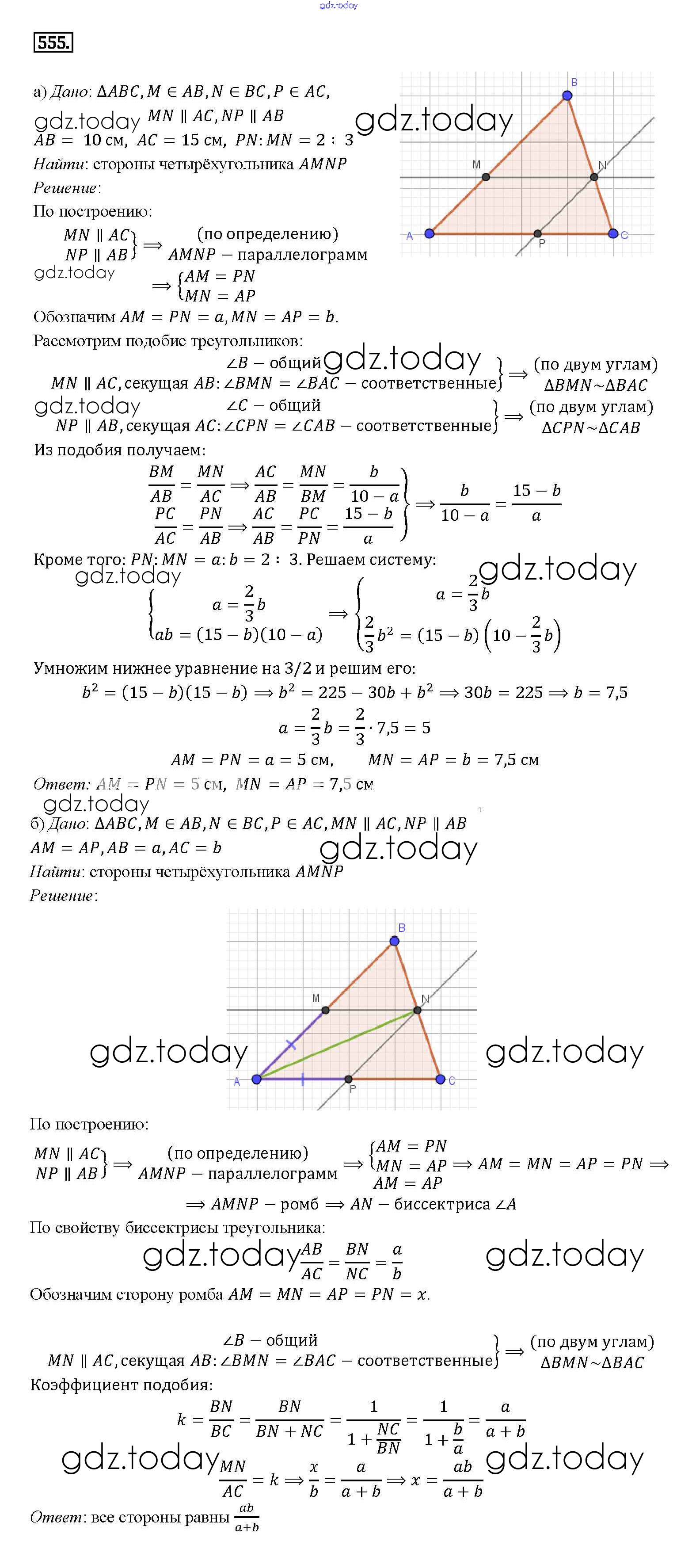 Ответы к Решение. Задачи 555 Учебнику по Геометрии для 7-9 класса Атанасян, Бутузов Просвещение 2010
