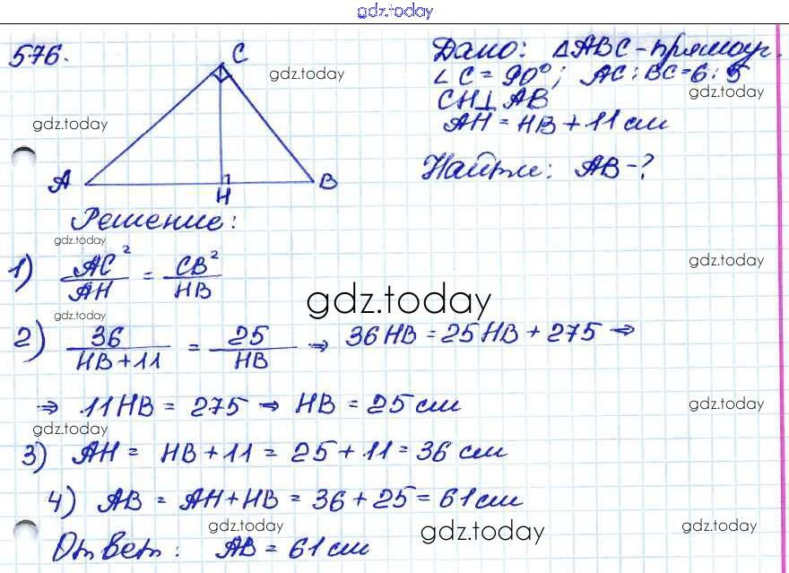 Ответы к Решение. Задачи 576 Учебнику по Геометрии для 7-9 класса Атанасян, Бутузов Просвещение 2010