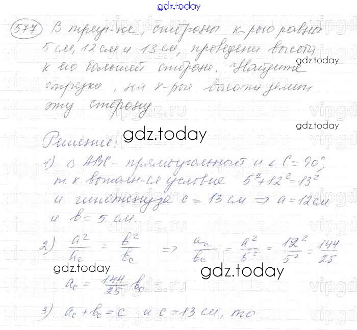 На страницах сайта gdz.today вы найдете учебный и вспомогательный материал, направленный на улучшения знаний школьной программы. ГДЗ - онлайн мир знаний Решение. Задачи 577 Учебнику по Геометрии для 7-9 класса Атанасян, Бутузов Просвещение 2010