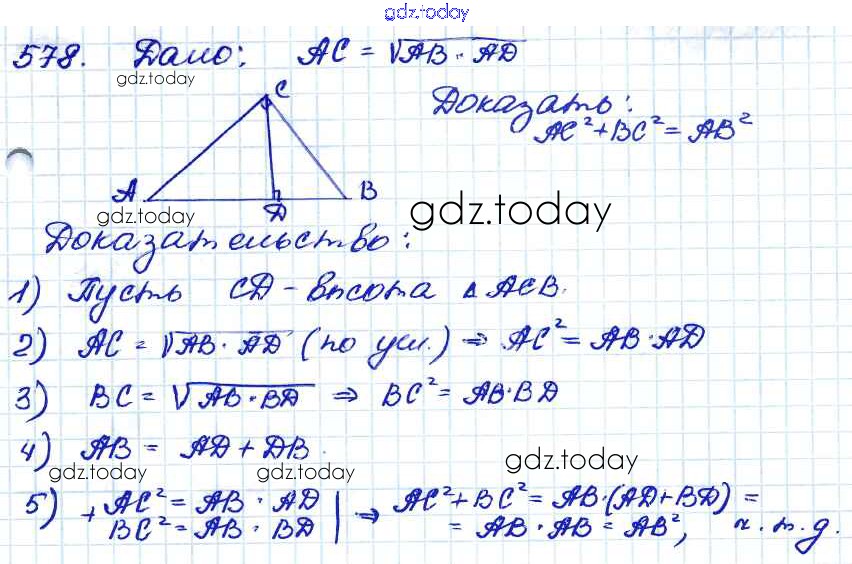 Ответы к Решение. Задачи 578 Учебнику по Геометрии для 7-9 класса Атанасян, Бутузов Просвещение 2010