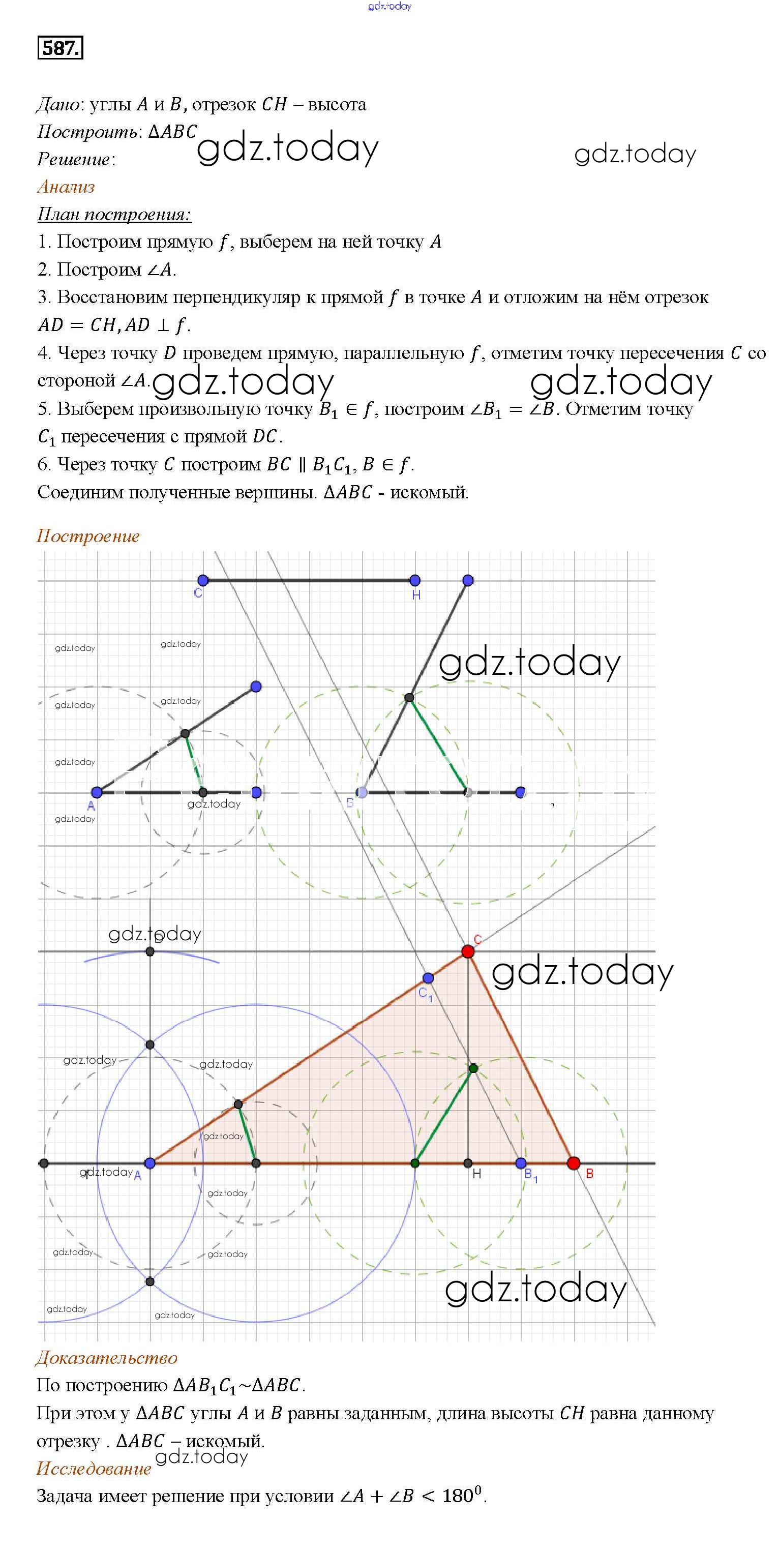 Ответы к Решение. Задачи 587 Учебнику по Геометрии для 7-9 класса Атанасян, Бутузов Просвещение 2010