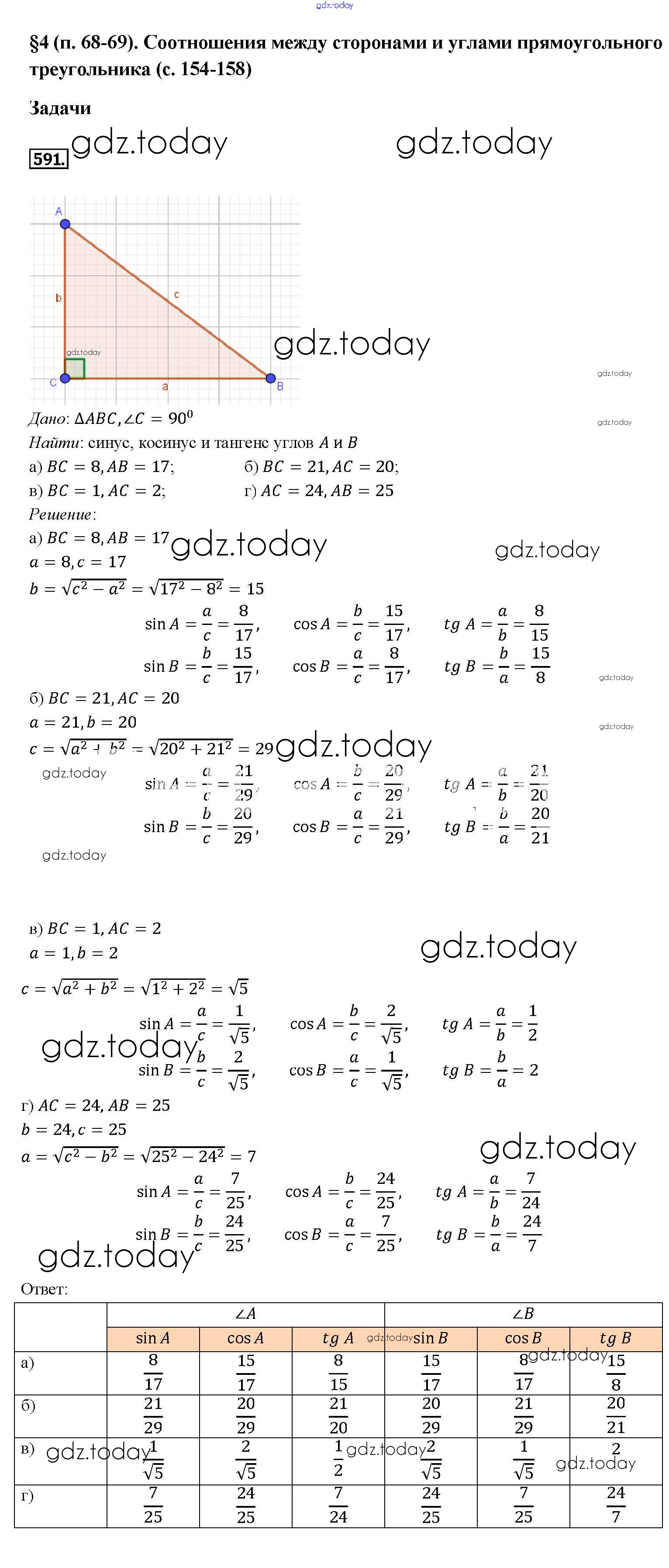 Ответы к Решение. Задачи 591 Учебнику по Геометрии для 7-9 класса Атанасян, Бутузов Просвещение 2010