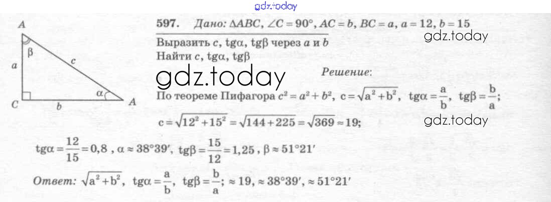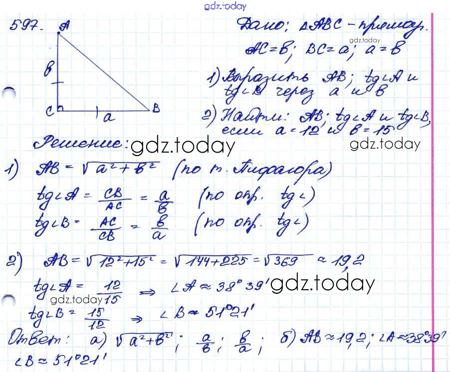 Ответы к Решение. Задачи 597 Учебнику по Геометрии для 7-9 класса Атанасян, Бутузов Просвещение 2010