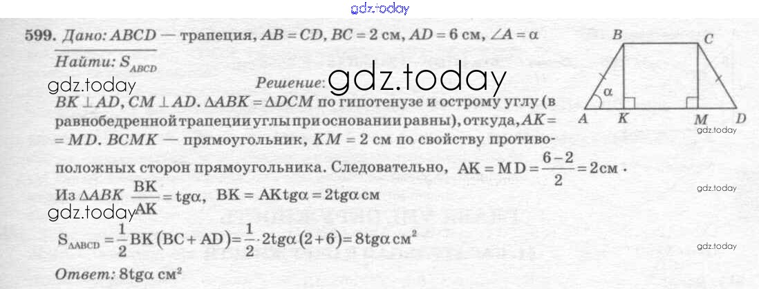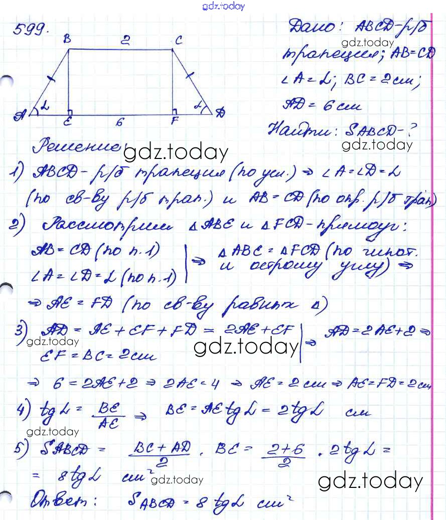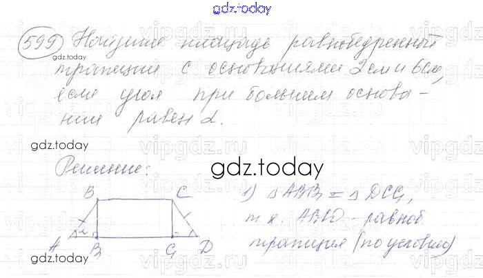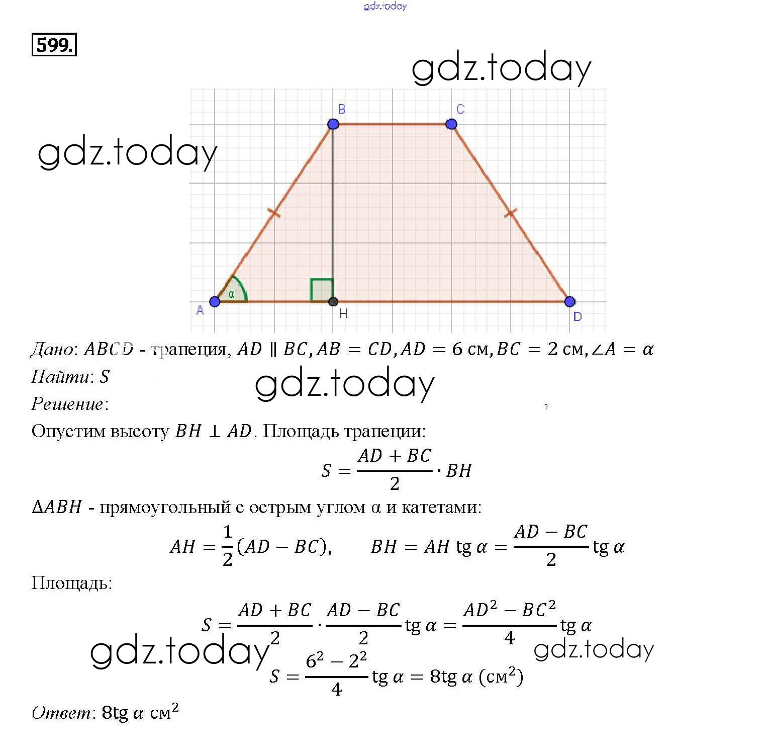 Ответы к Решение. Задачи 599 Учебнику по Геометрии для 7-9 класса Атанасян, Бутузов Просвещение 2010