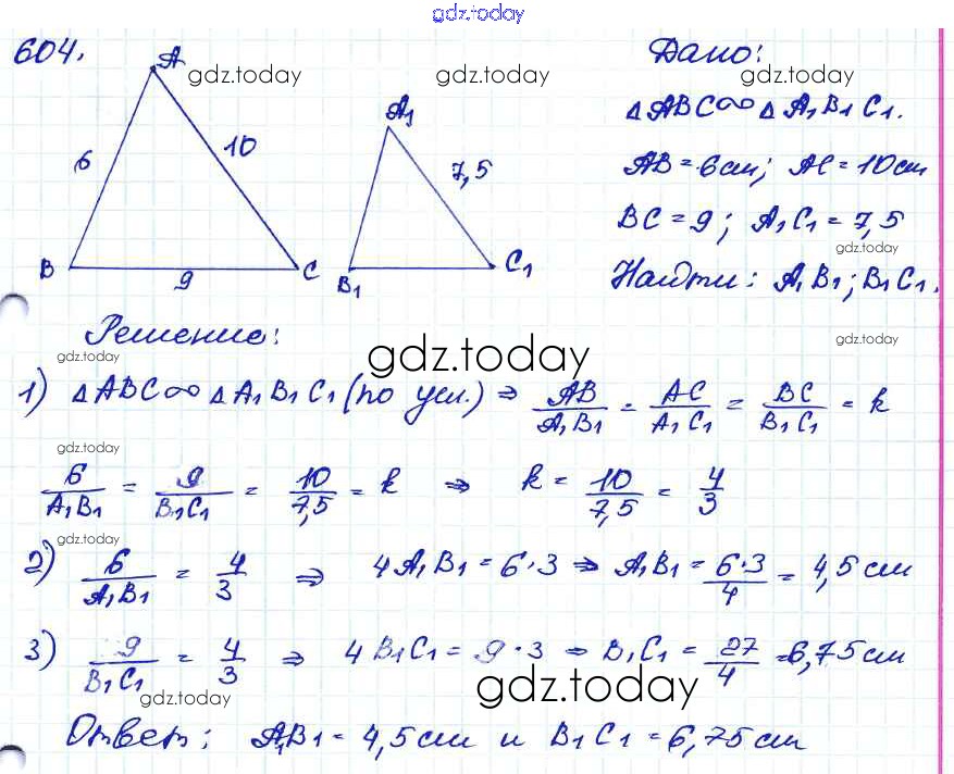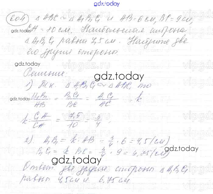 Ответы к Решение. Задачи 604 Учебнику по Геометрии для 7-9 класса Атанасян, Бутузов Просвещение 2010