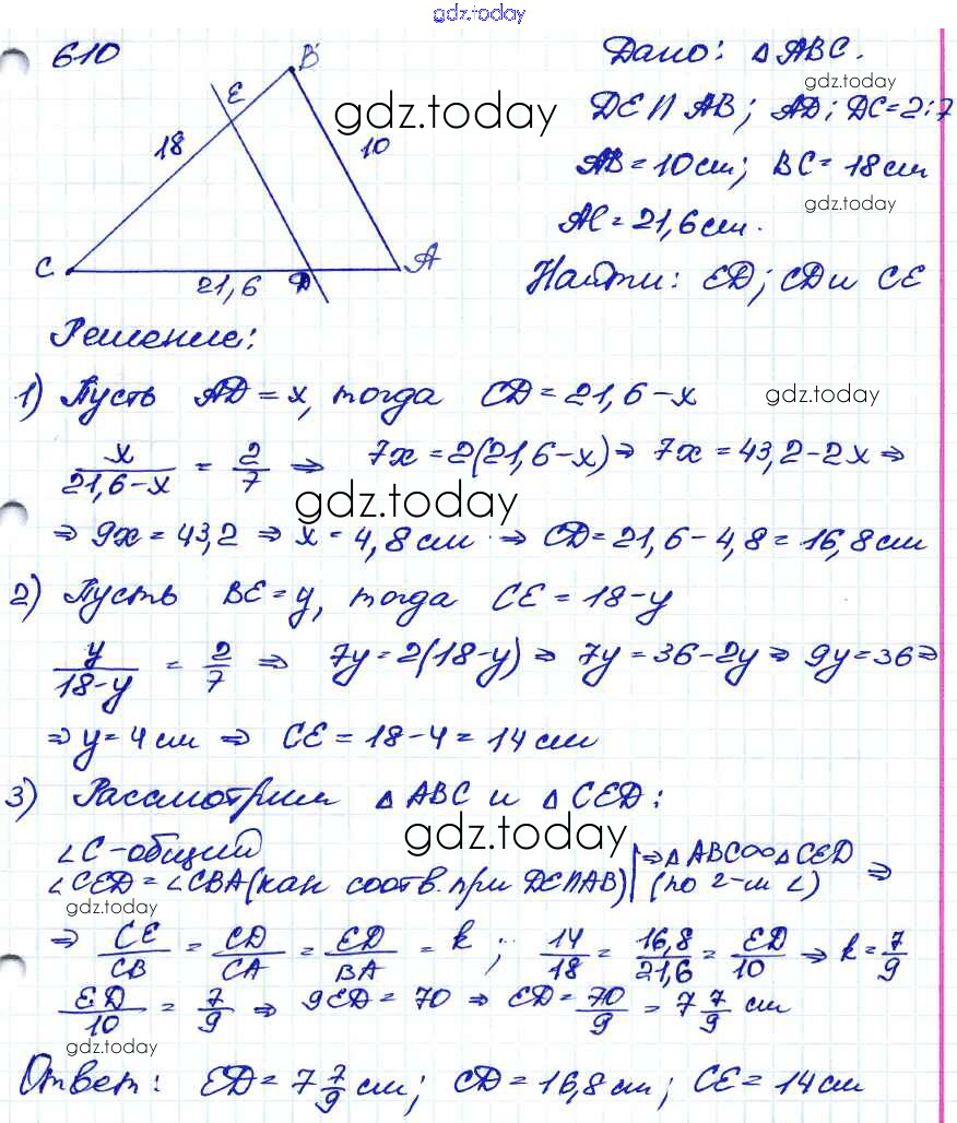 Ответы к Решение. Задачи 610 Учебнику по Геометрии для 7-9 класса Атанасян, Бутузов Просвещение 2010